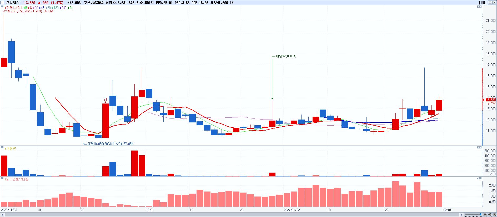 28.신시웨이 13,820원 ▲ 7.47% (KOSDAQ, 290560)
