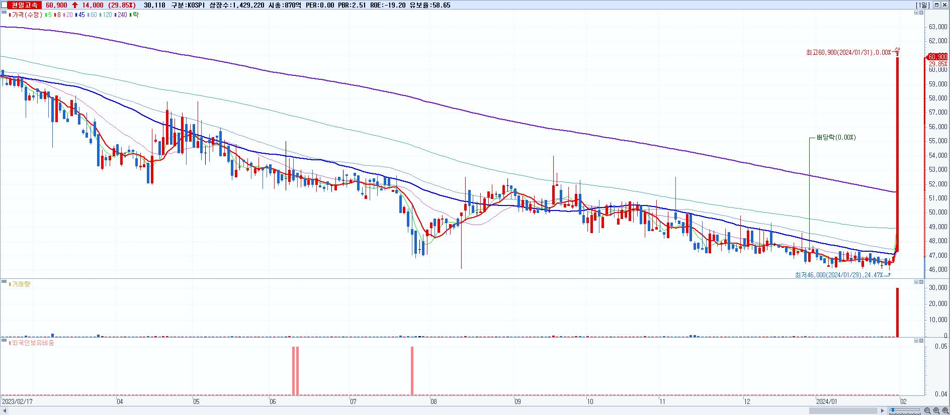 2.천일고속 60,900원 ▲ 29.85% (KOSPI, 000650)