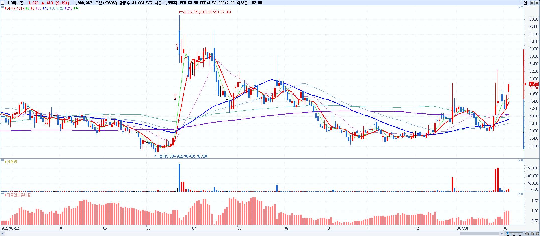 29.HLB파나진 4,870원 ▲ 9.19% (KOSDAQ, 046210)