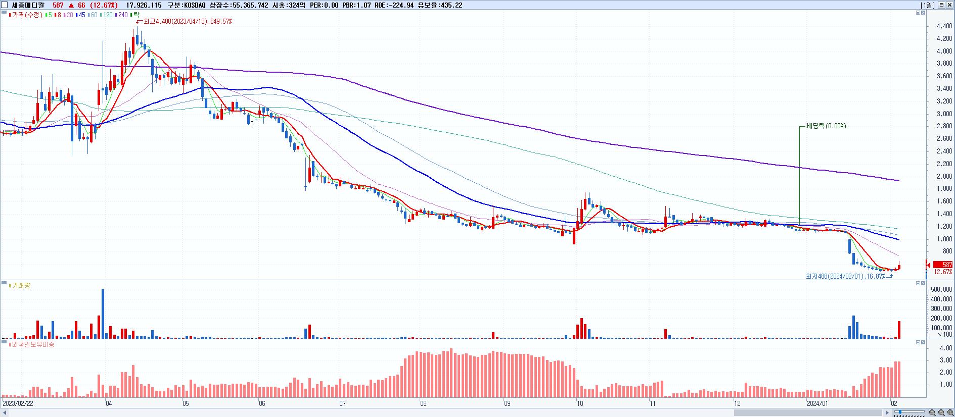 시총: 947억 거래량: 22,412,566 거래대금:357억