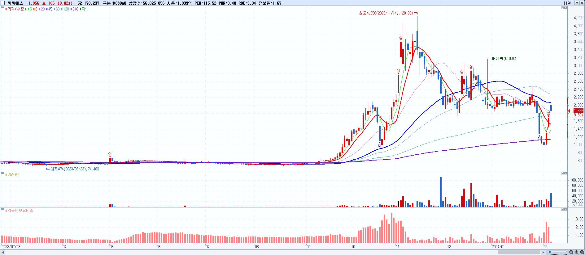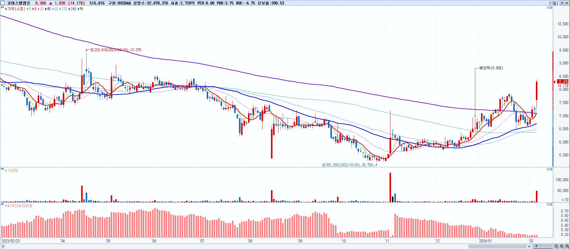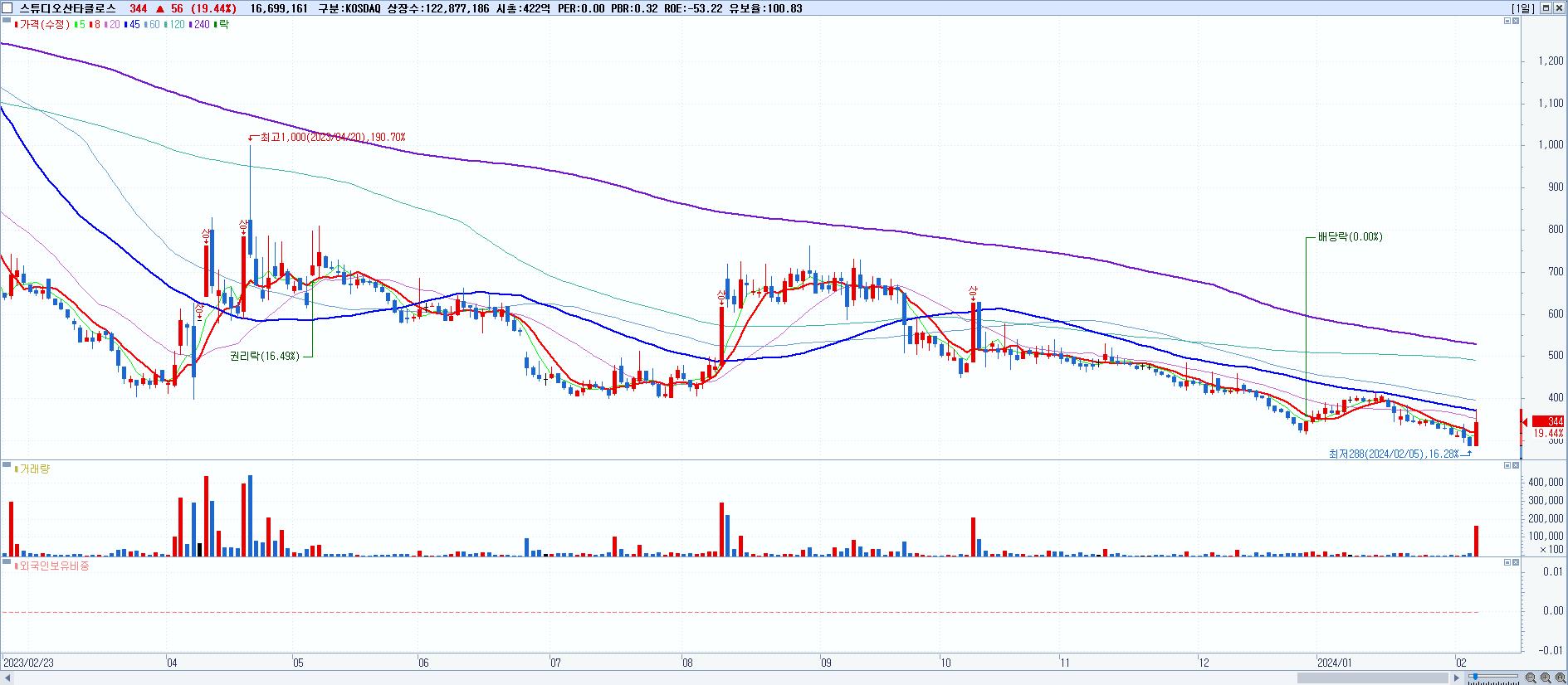 시총: 1,040억 거래량: 52,320,674 거래대금:1,014억