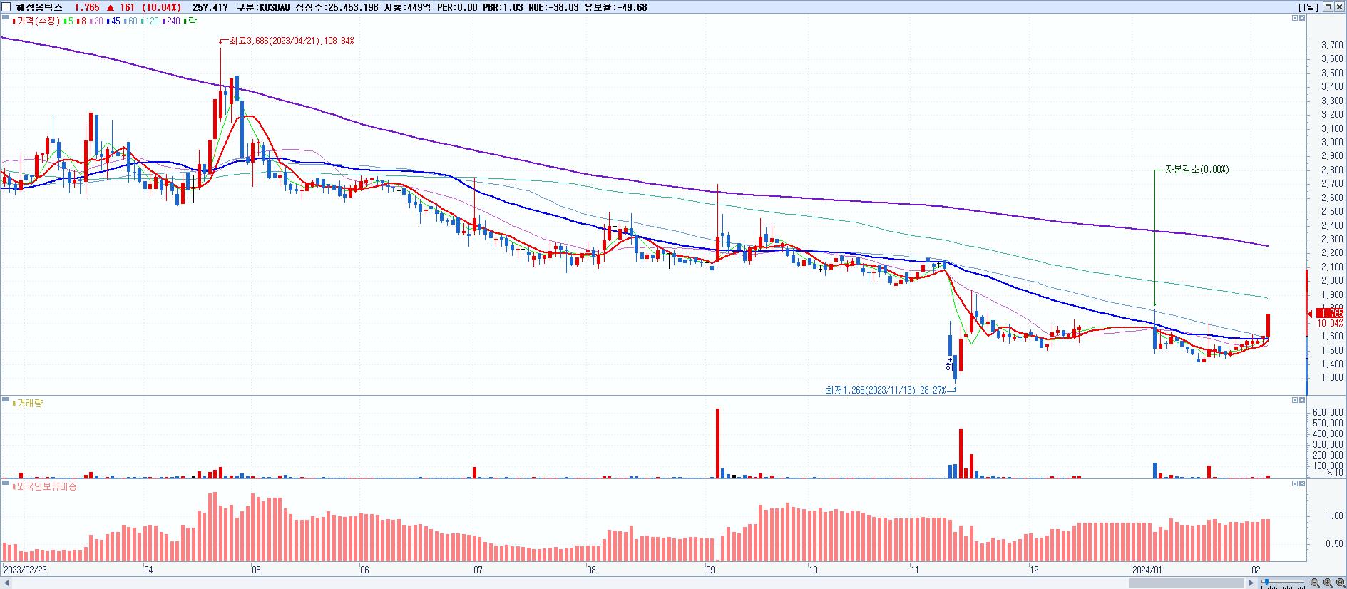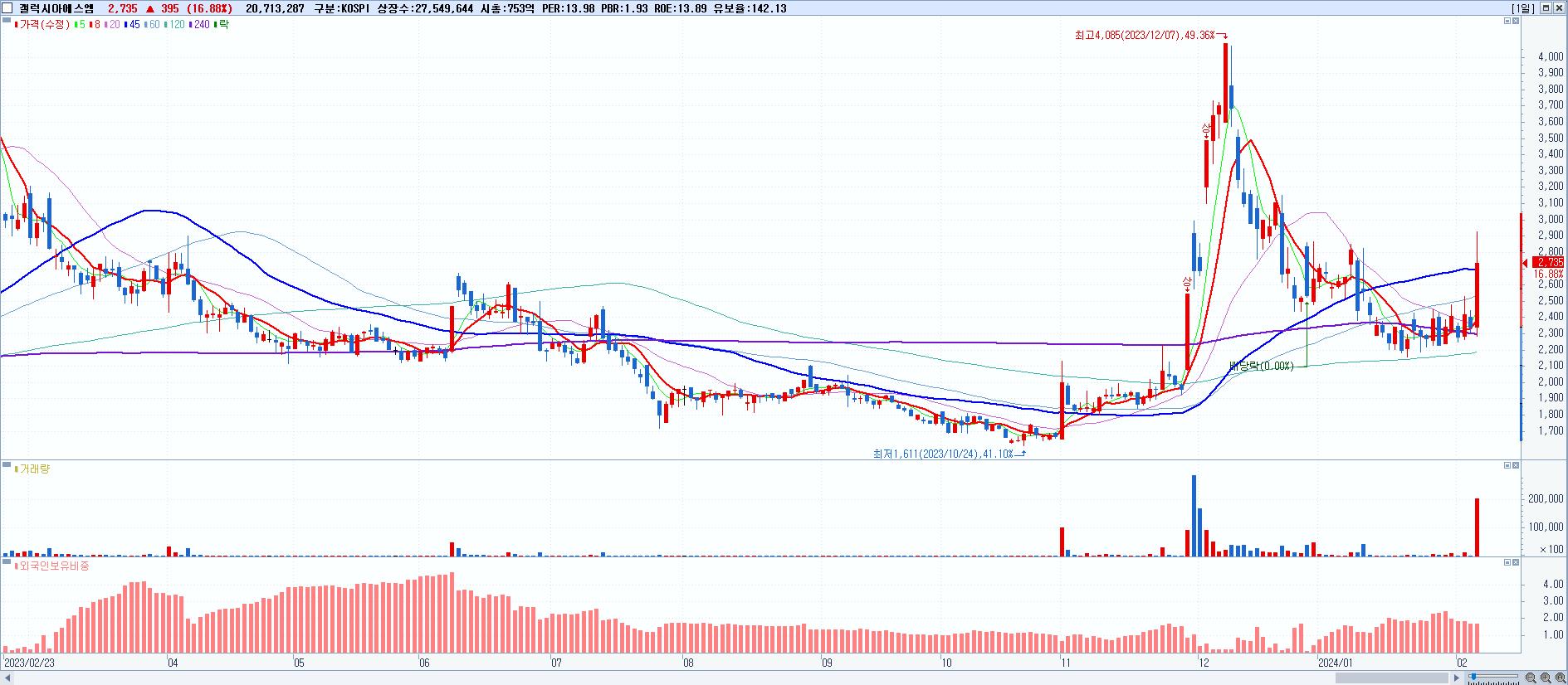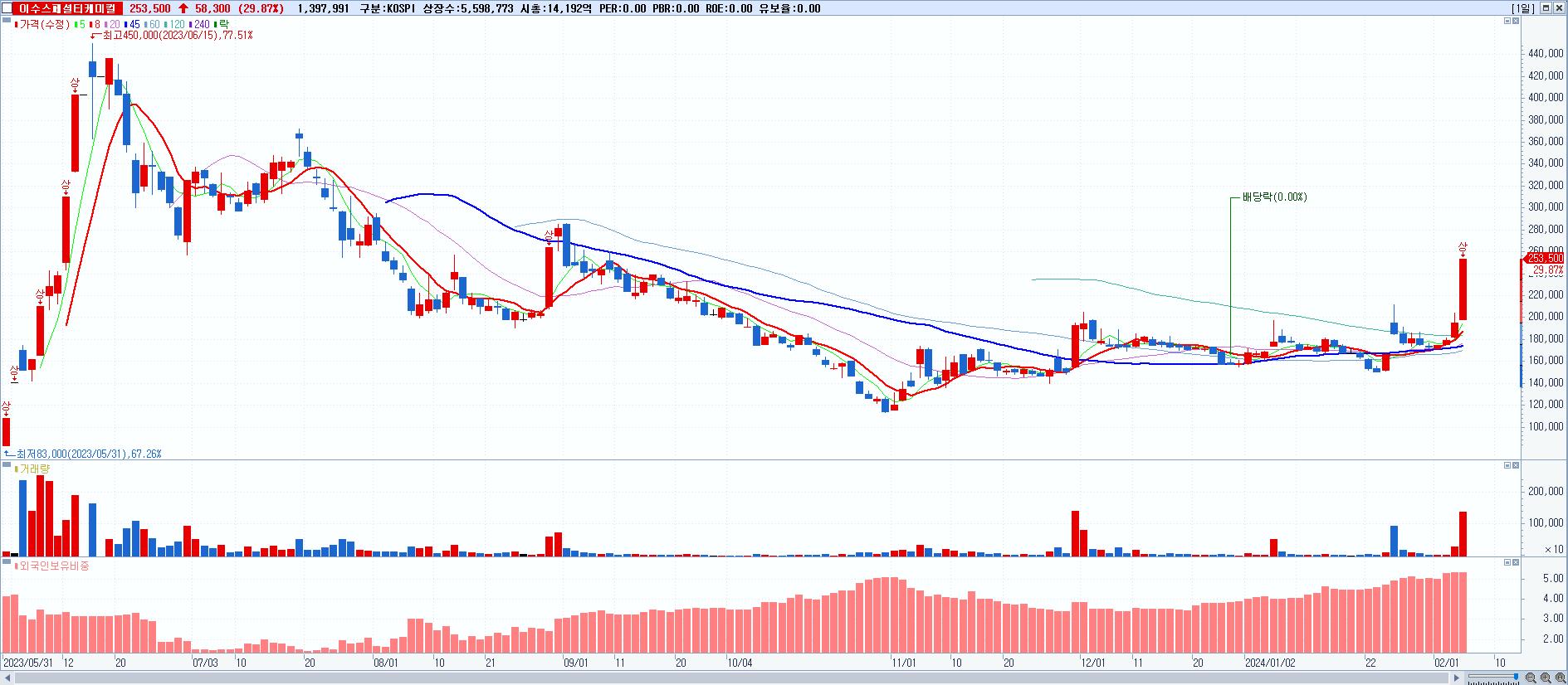 시총: 14,193억 거래량: 1,398,315 거래대금:3,412억