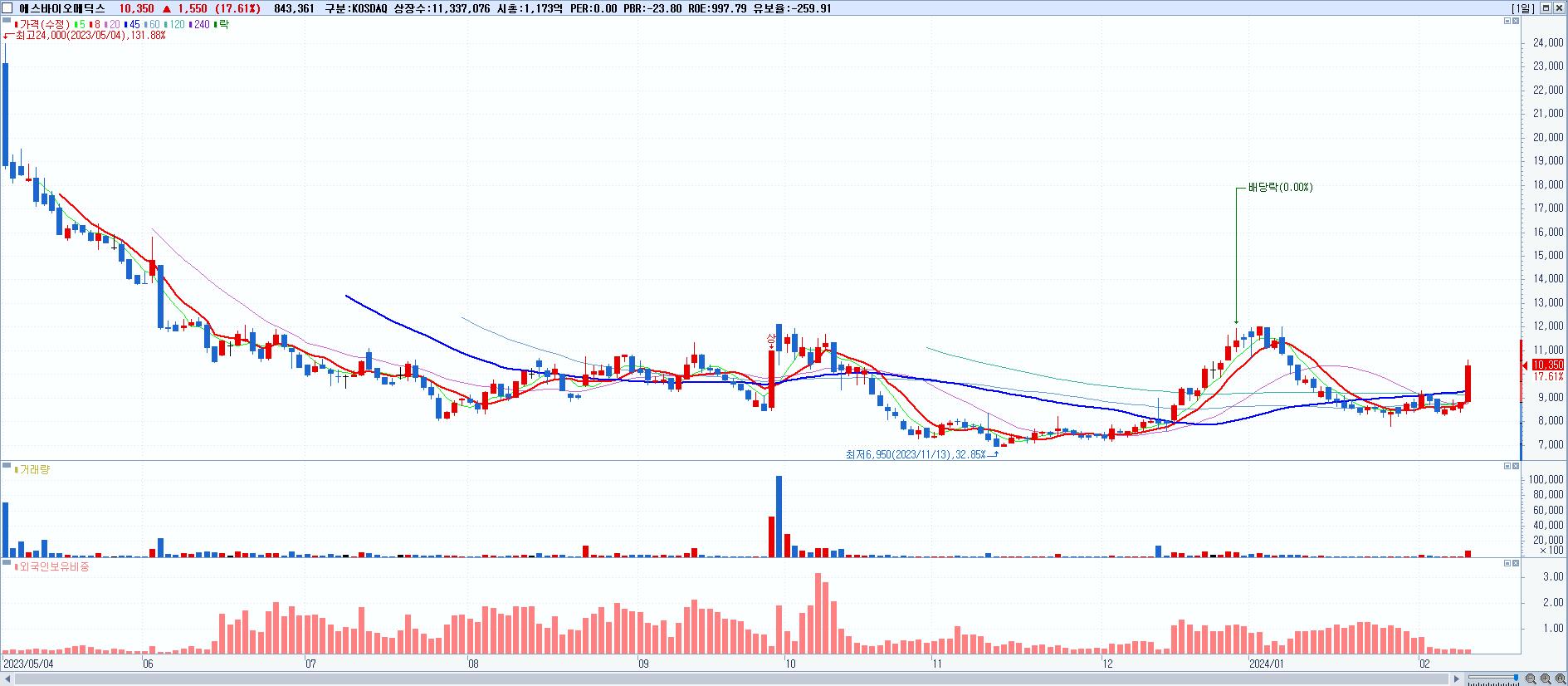 시총: 10,458억 거래량: 38,268,662 거래대금:1,235억