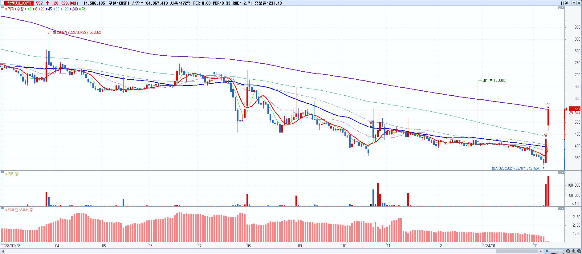 시총: 429억 거래량: 14,776,486 거래대금:118억