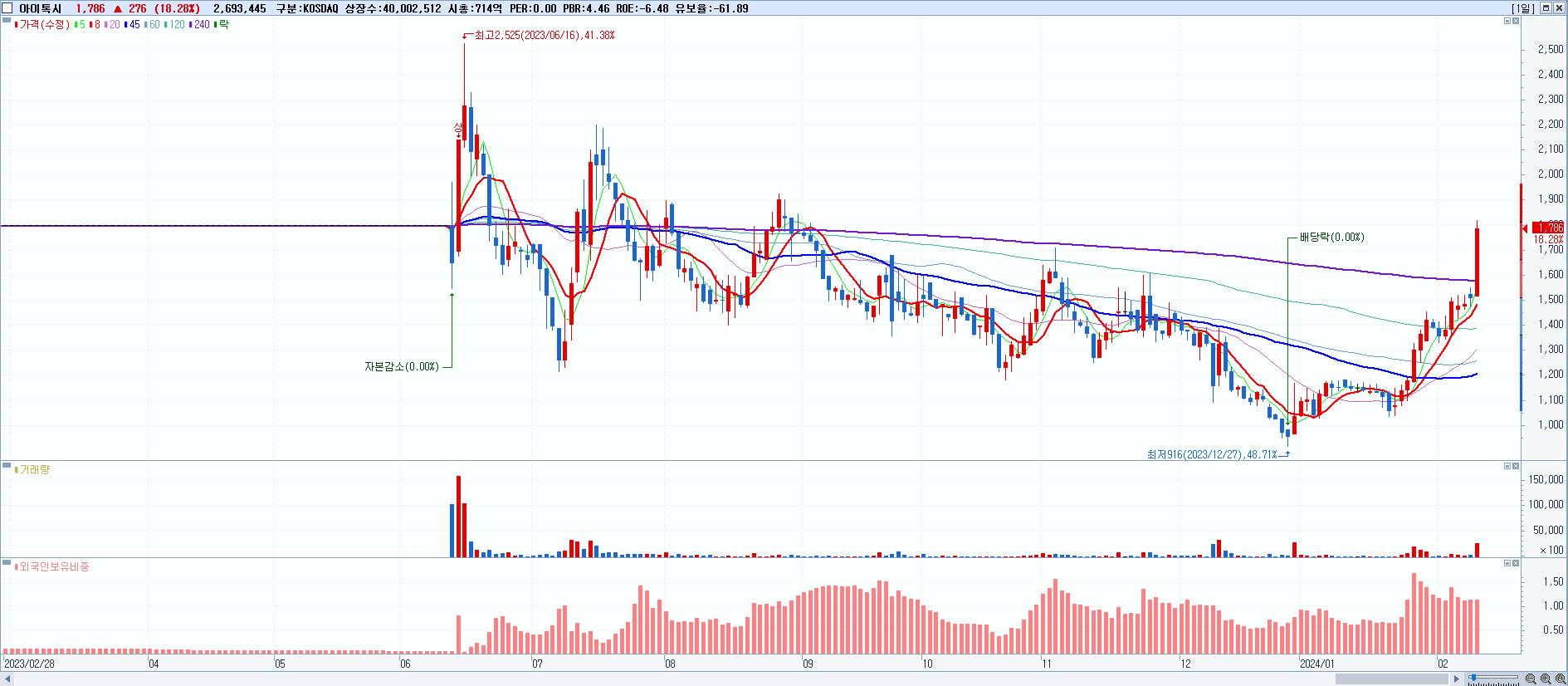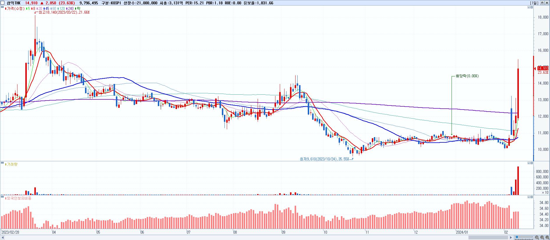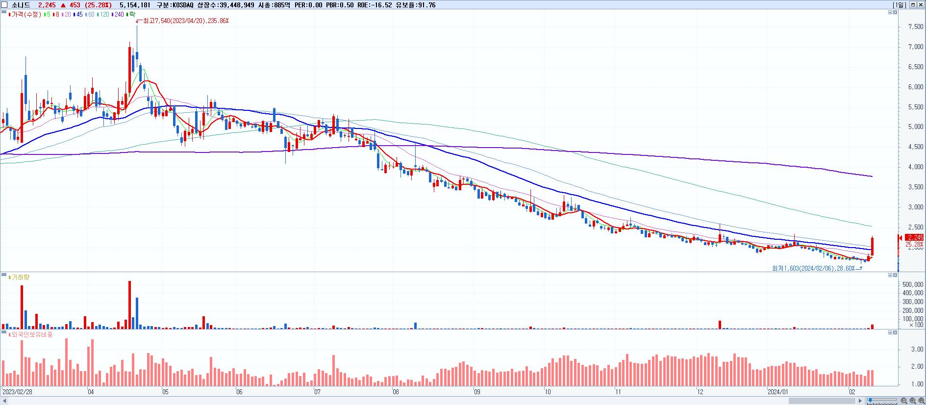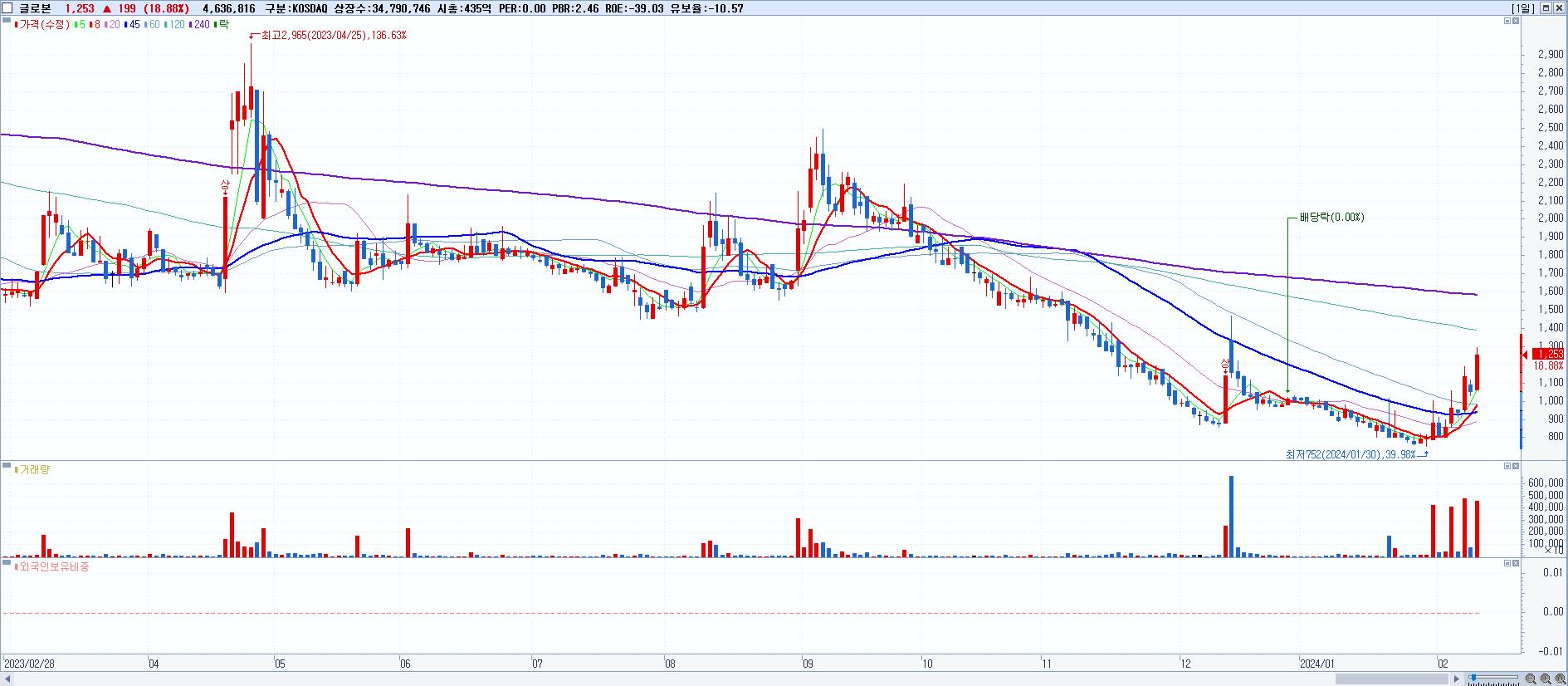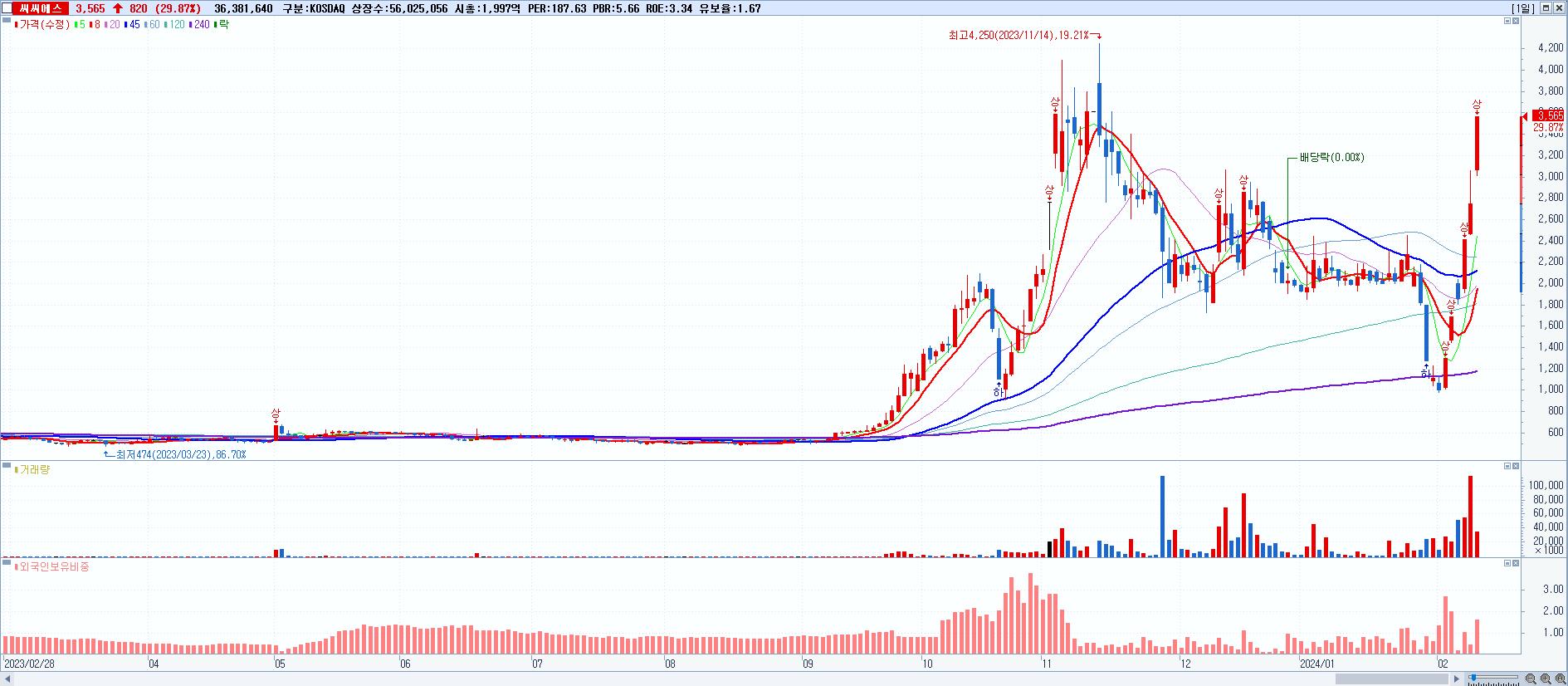 시총: 2,296억 거래량: 7,795,660 거래대금:353억