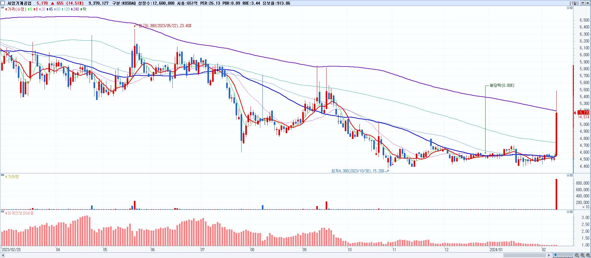 30.서암기계공업 5,170원 ▲ 14.51% (KOSDAQ, 100660)