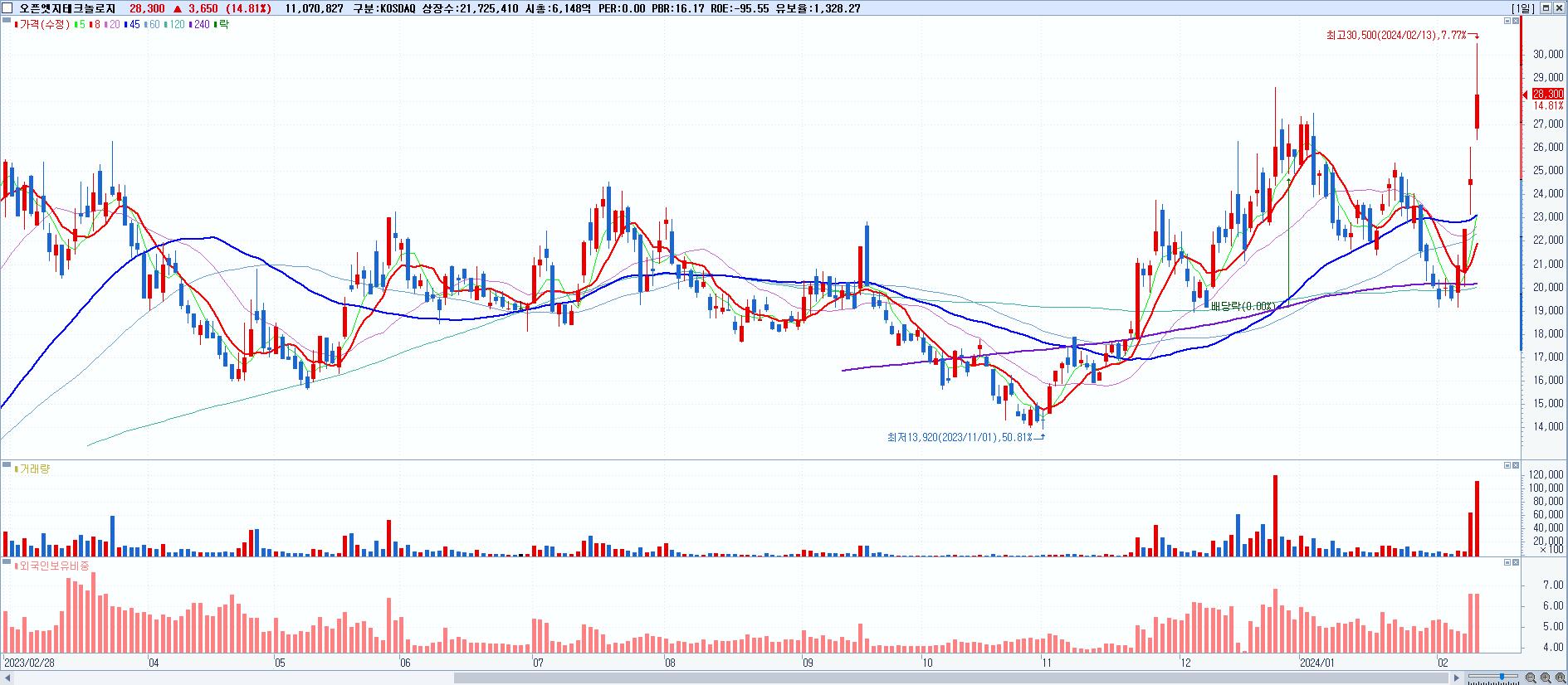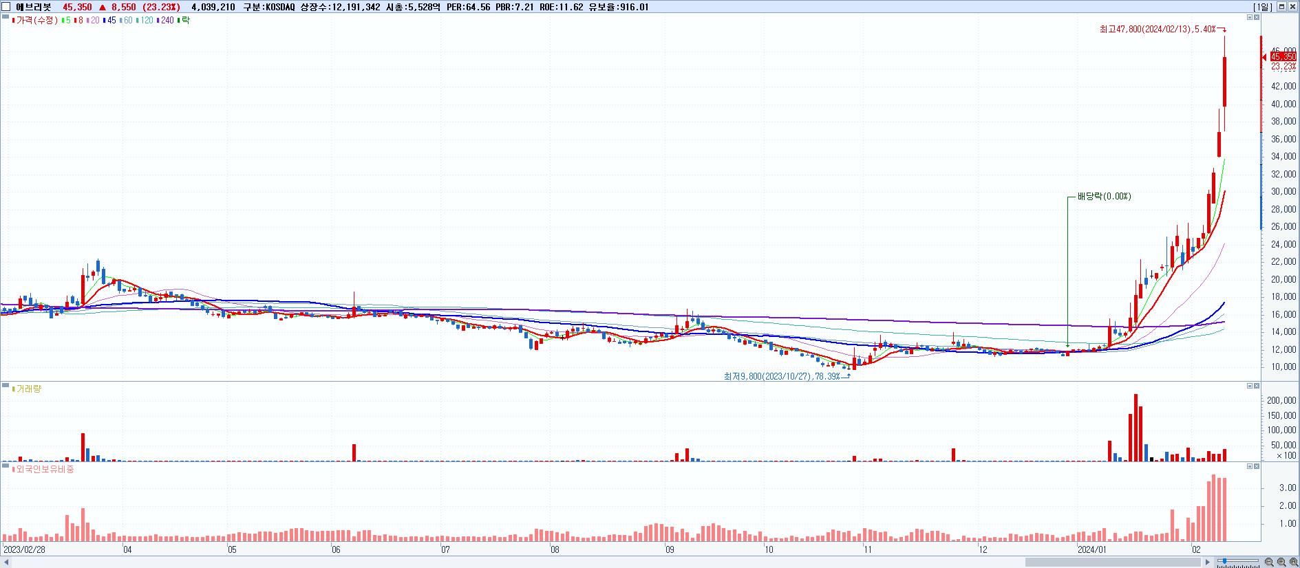 시총: 651억 거래량: 9,391,833 거래대금:482억