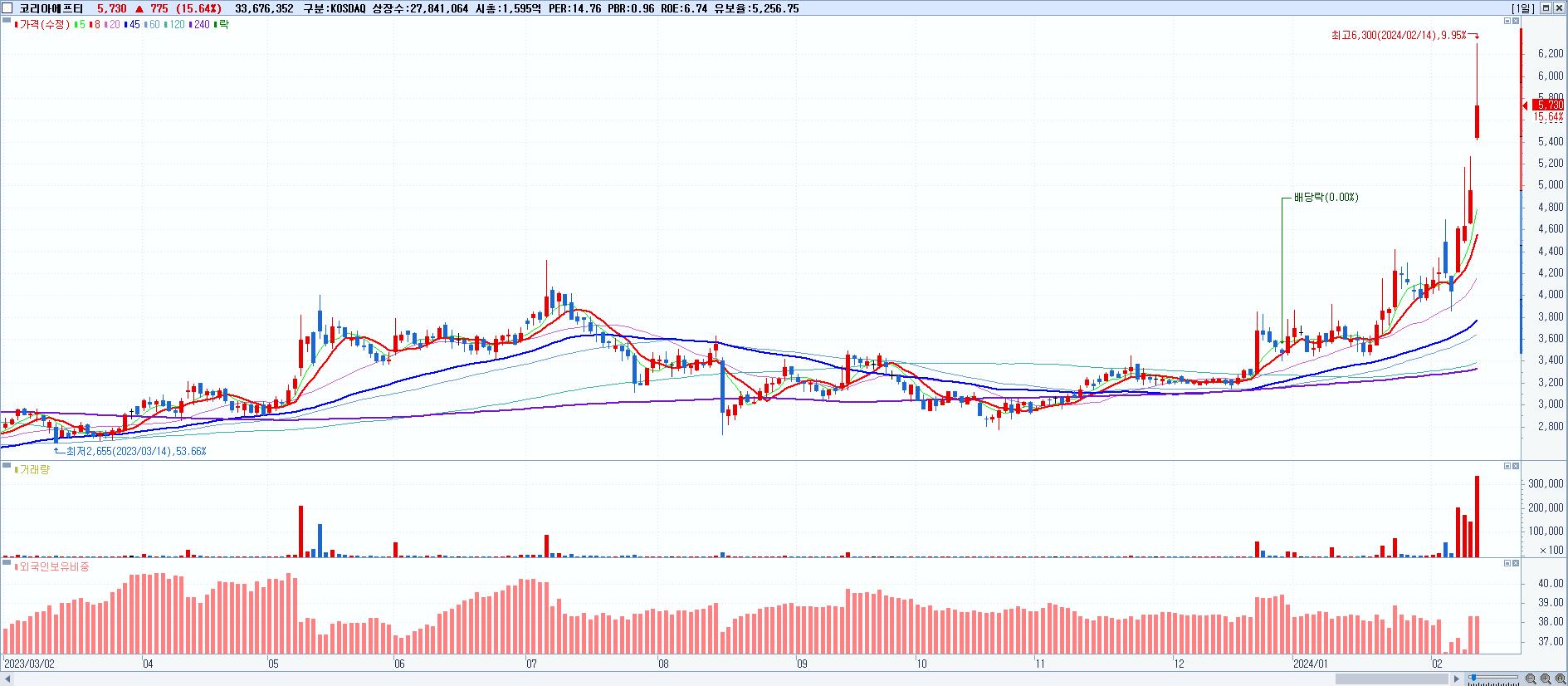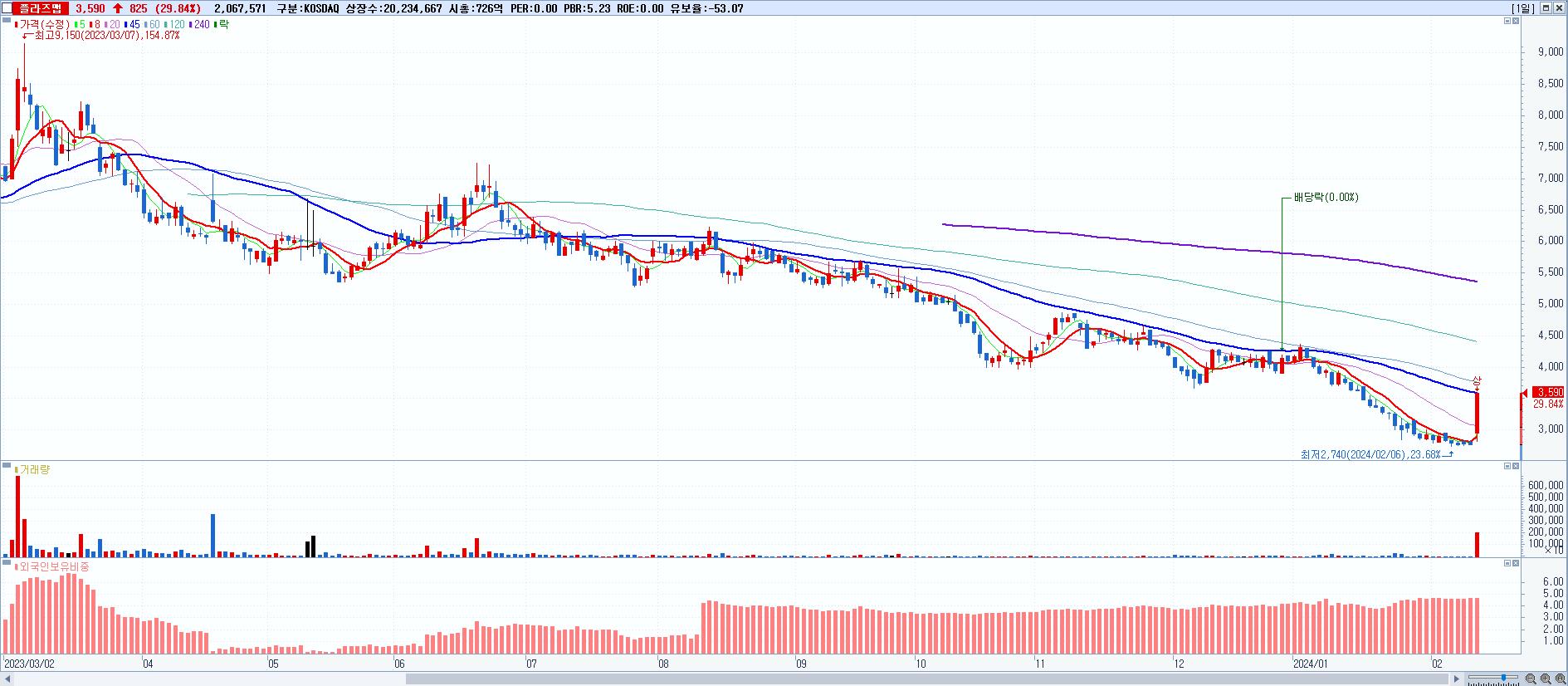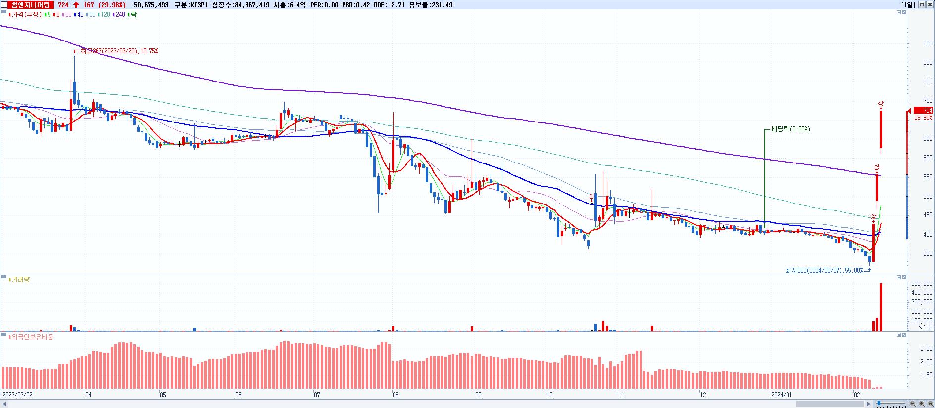 시총: 614억 거래량: 50,776,540 거래대금:345억