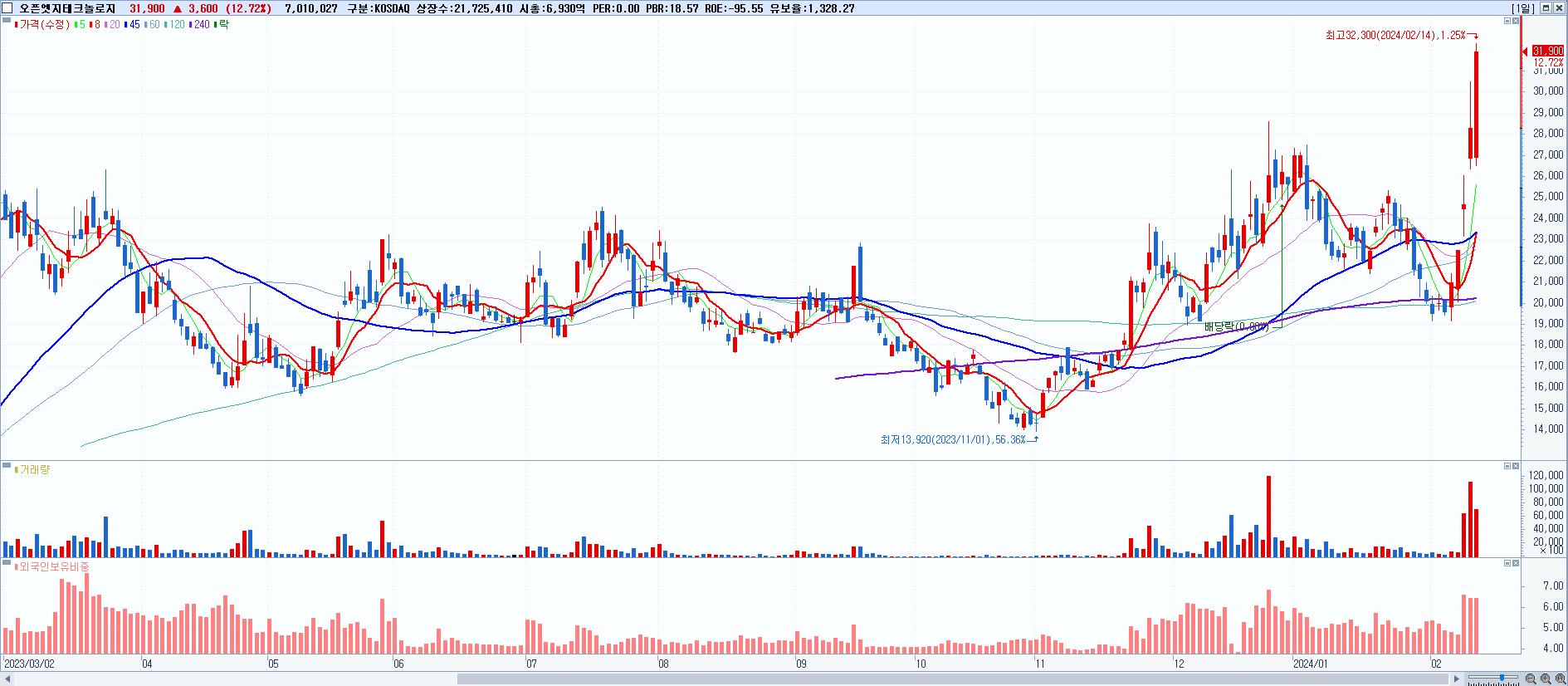 - 오픈엣지테크놀로지 (31,900원 ▲ 12.72% , 시총: 6,930억, 거래량: 7,084,998, 거래대금:2,102억)