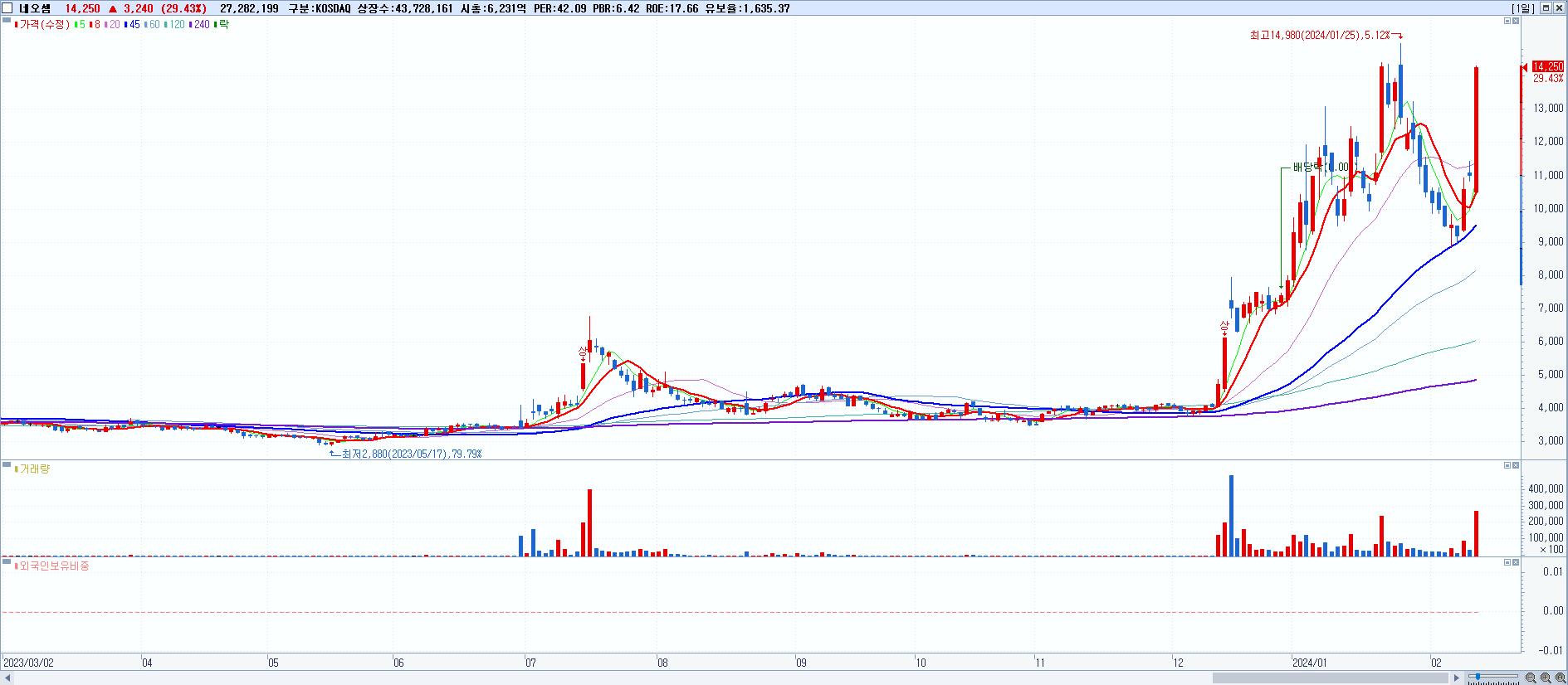 시총: 1,463억 거래량: 15,142,995 거래대금:1,307억