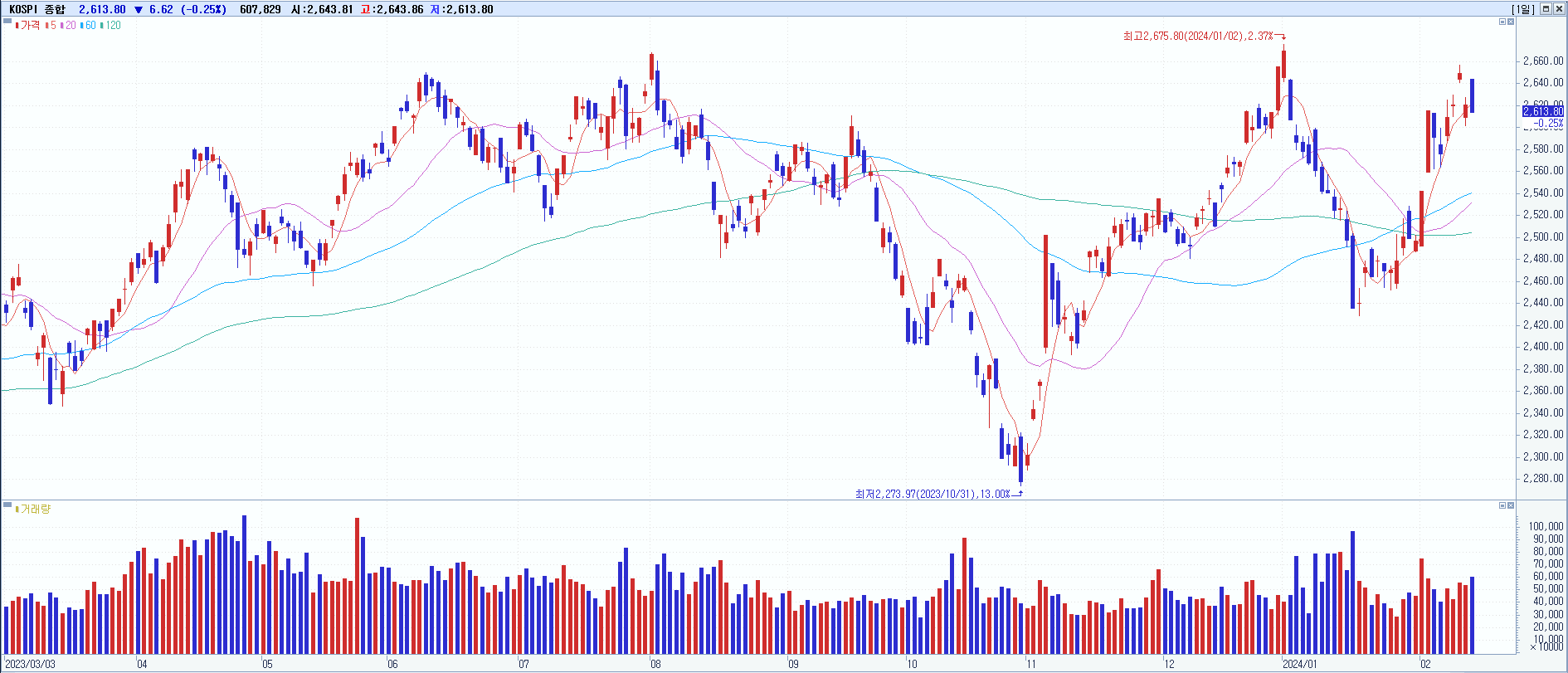 코스피 KOSPI 2,613.80 (▼-6.62) -0.25%