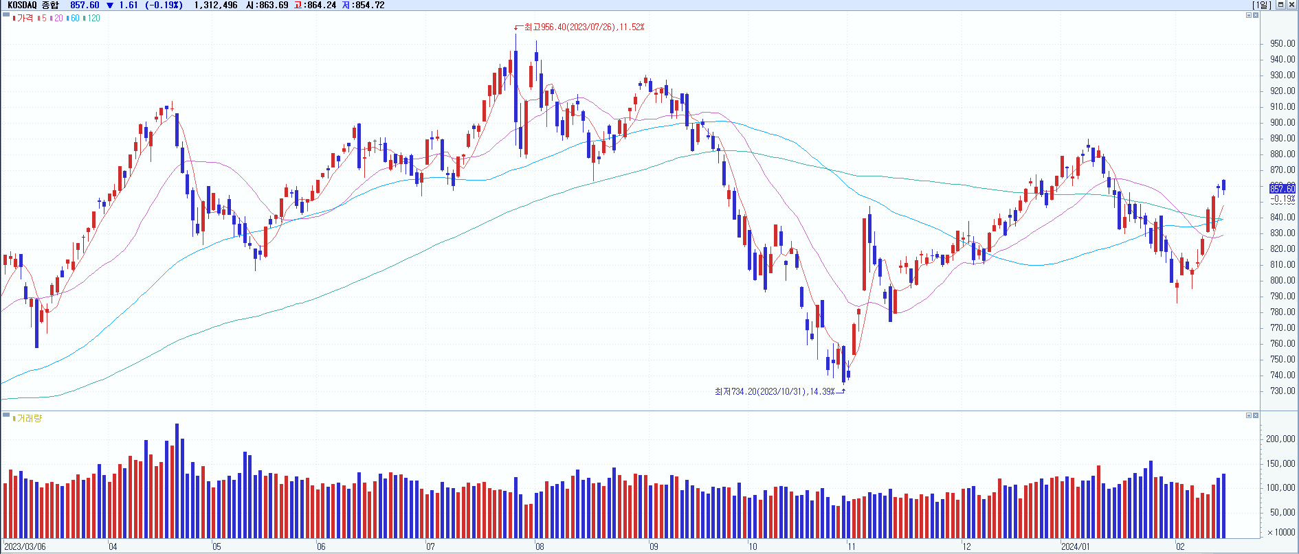 코스닥 KOSDAQ 857.60 (▼-1.61) -0.19%