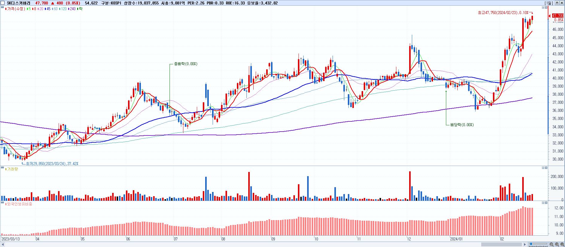 - SK디스커버리 (47,700원 ▲ 0.85% , 시총: 9,081억, 거래량: 54,625, 거래대금:26억, KOSPI)