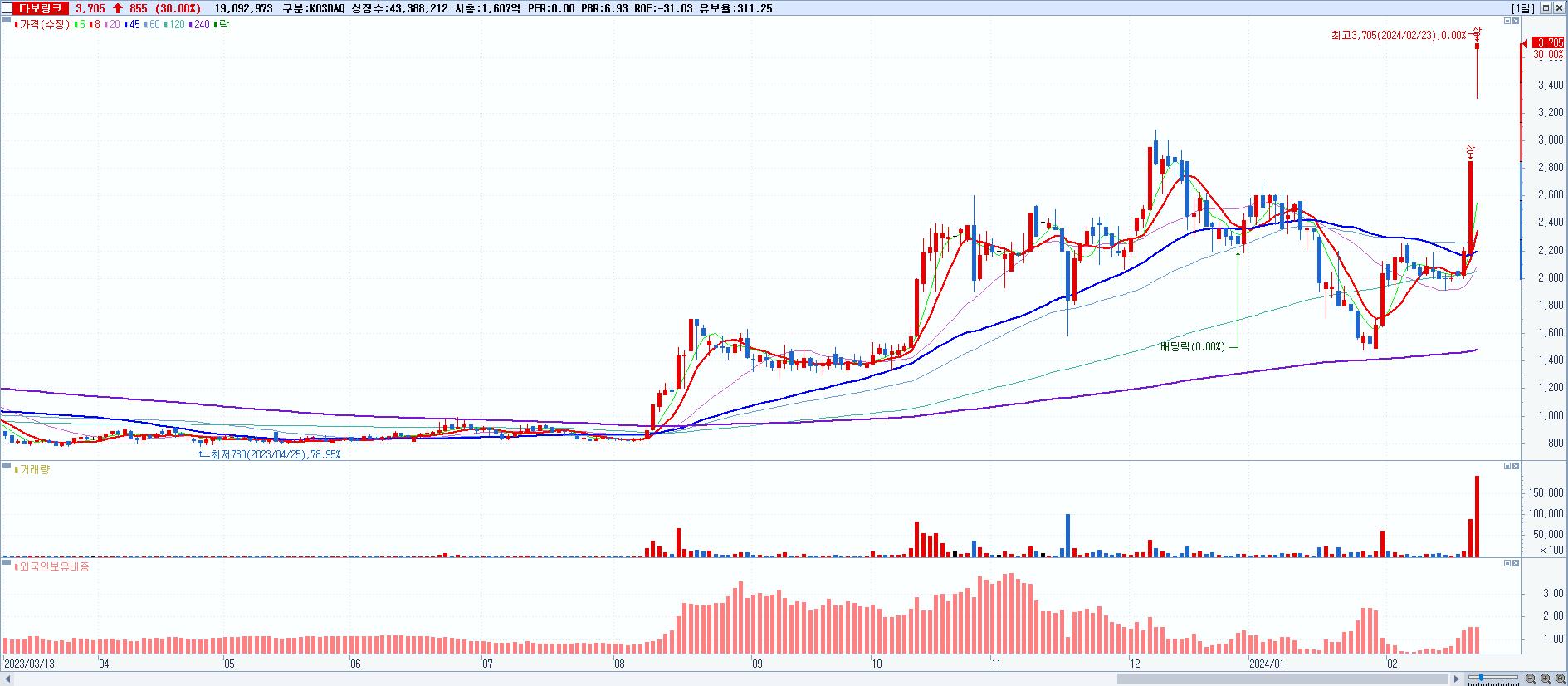 다보링크 3,705원 ▲ 30% (KOSDAQ, 340360)