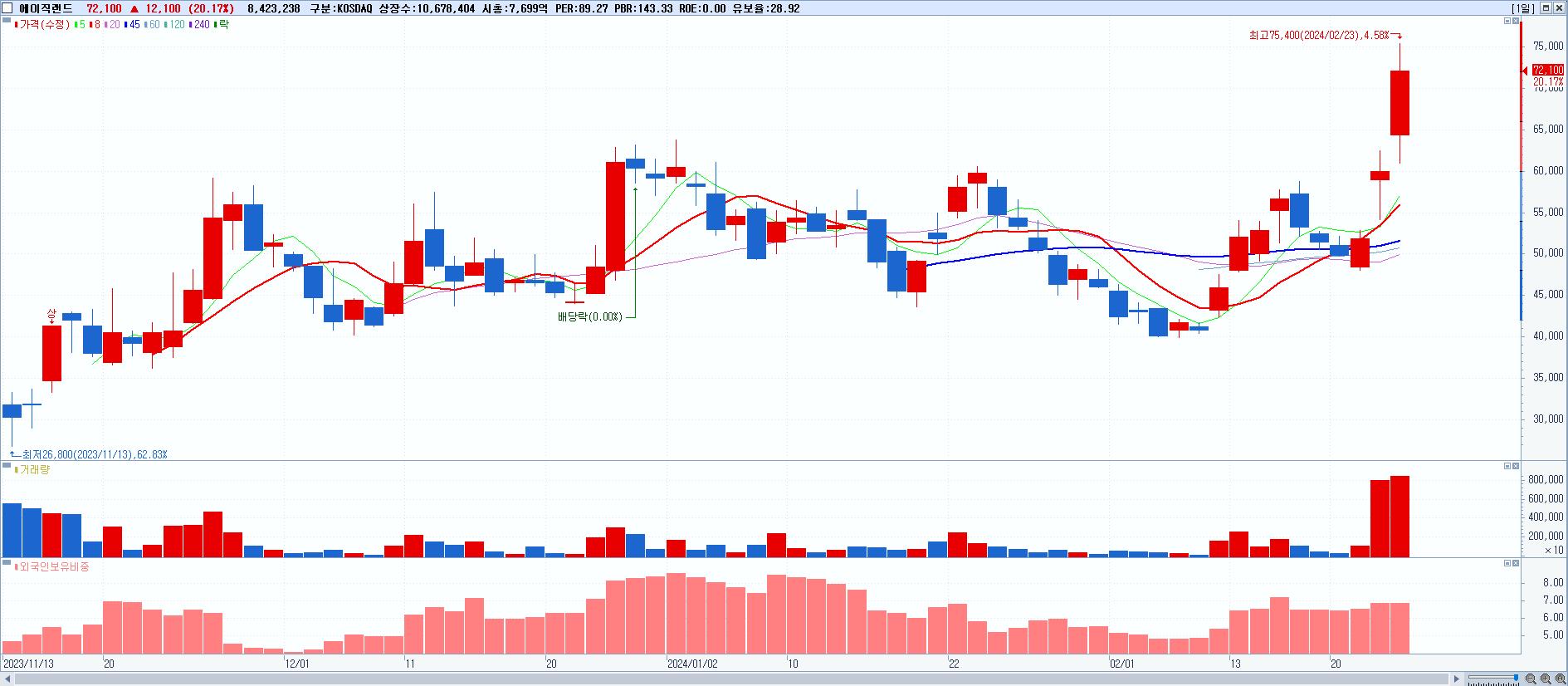 시총: 2,030억 거래량: 38,963,818 거래대금:761억