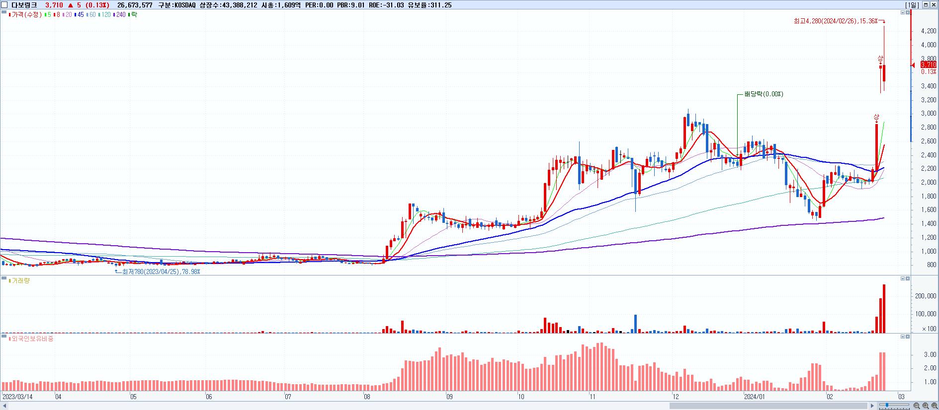 다보링크 3,710원 ▲ 0.13% (KOSDAQ, 340360)