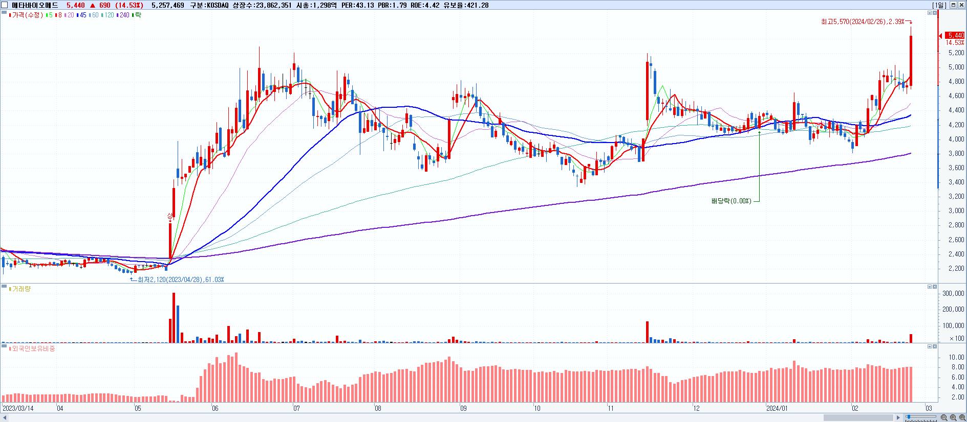 시총: 1,298억 거래량: 5,313,271 거래대금:280억