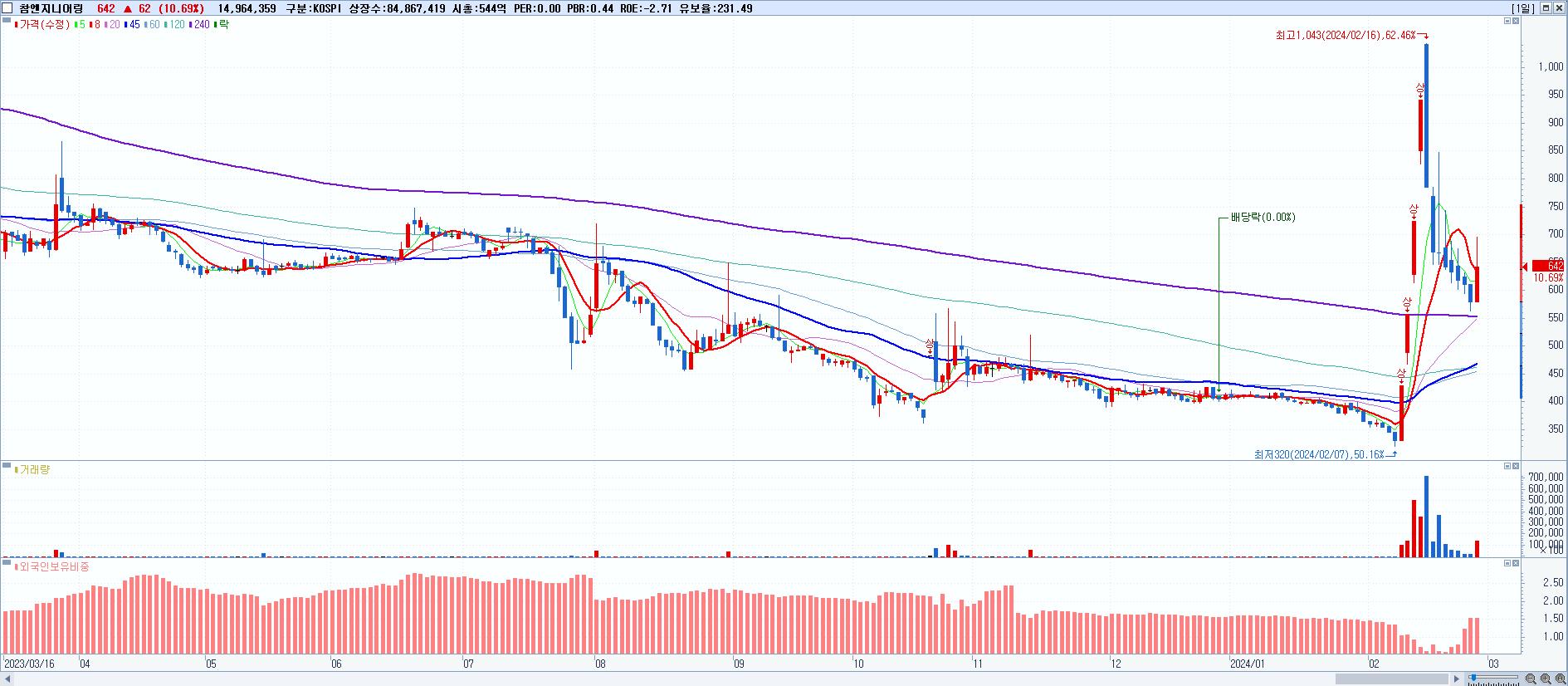 시총: 2,312억 거래량: 575,145 거래대금:96억