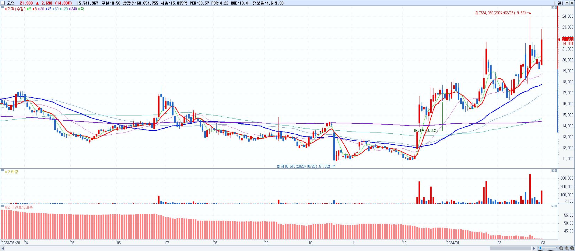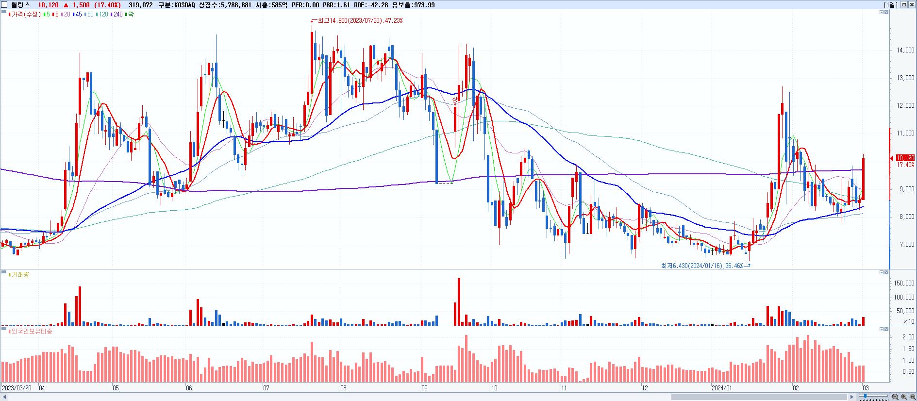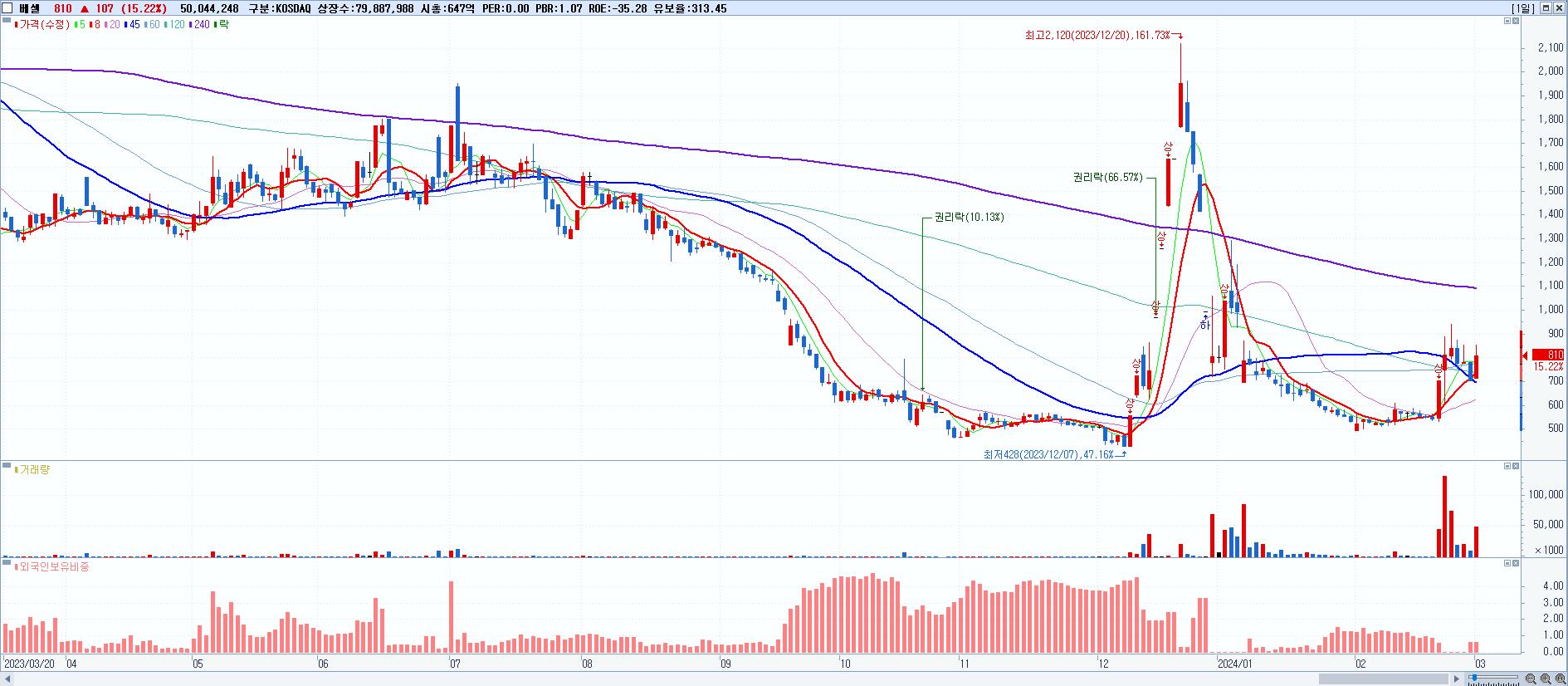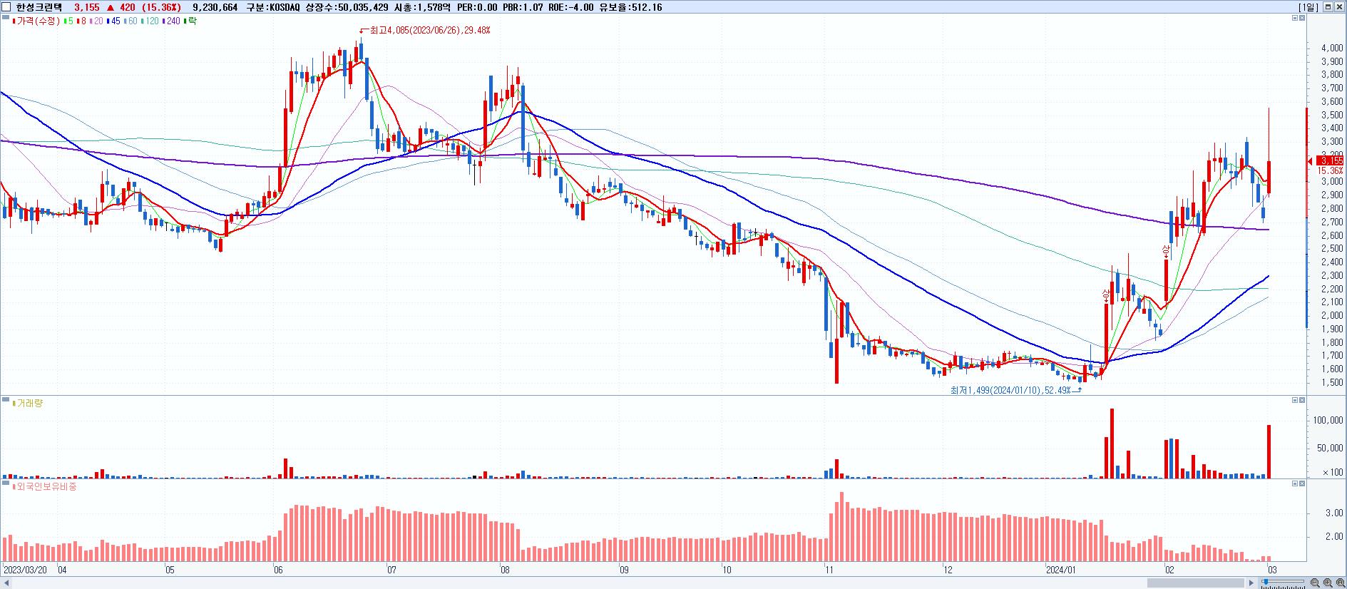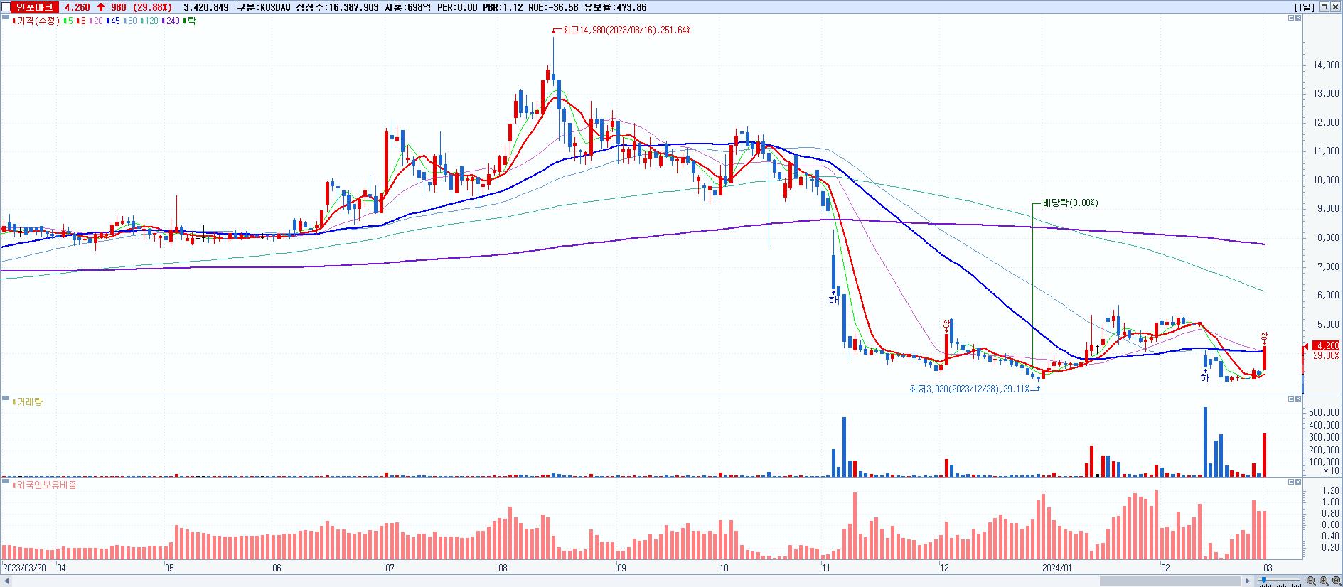 시총: 15,035억 거래량: 15,760,336 거래대금:3,420억