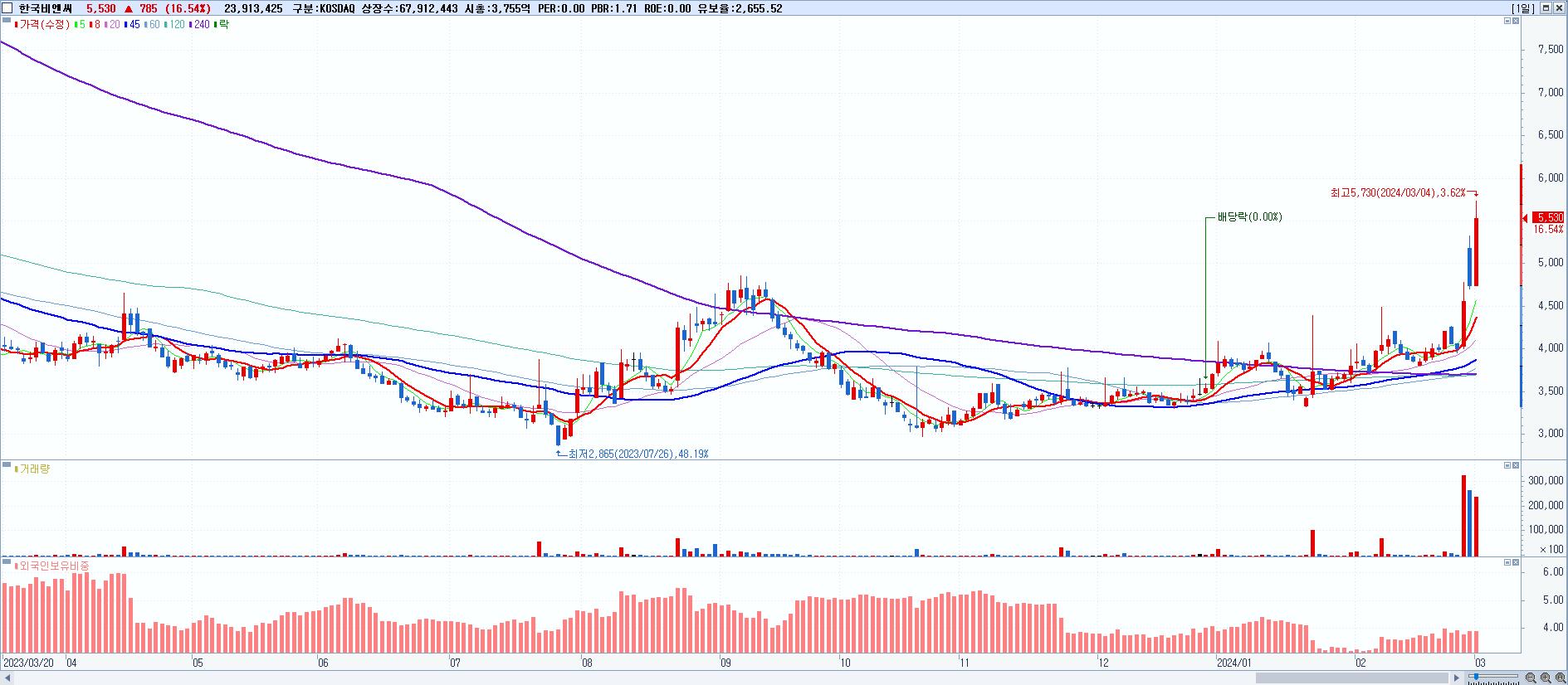 시총: 5,703억 거래량: 5,410,267 거래대금:635억