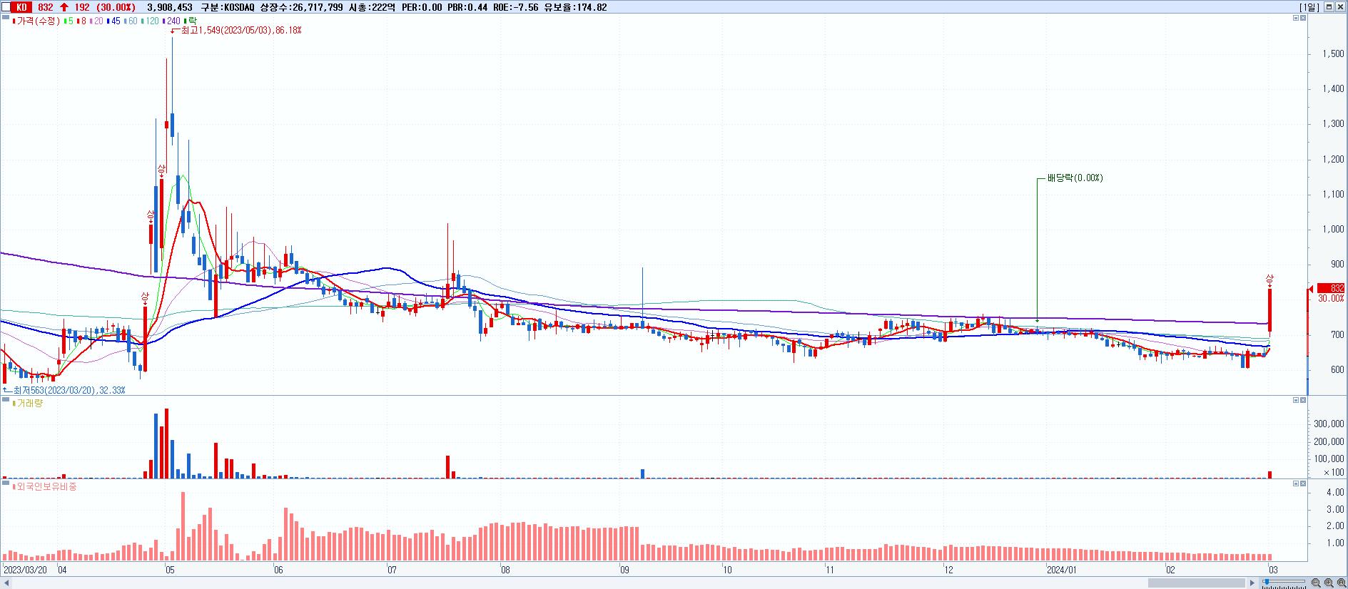1.KD 832원 ▲ 30% (KOSDAQ, 044180)