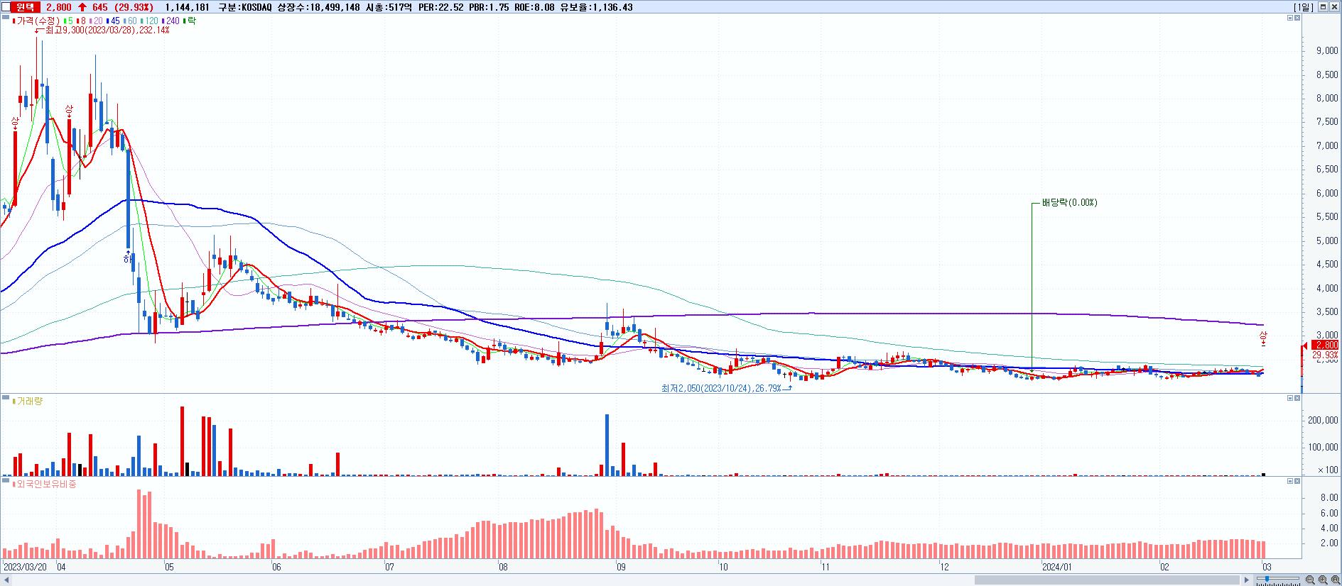 시총: 222억 거래량: 3,908,455 거래대금:31억