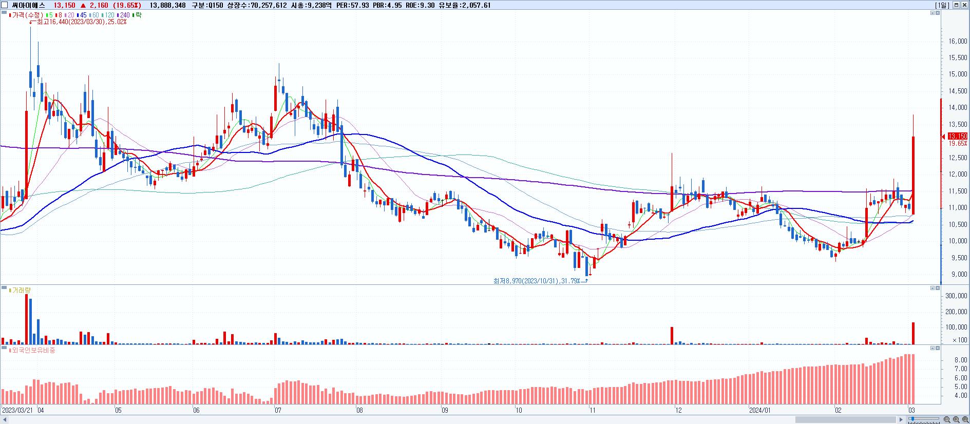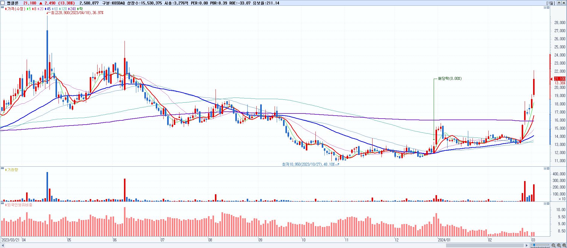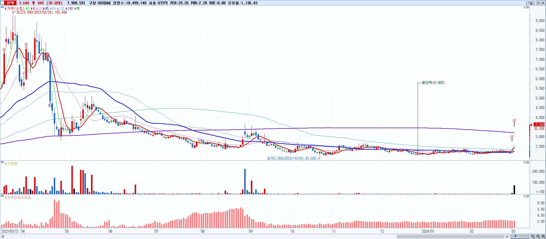 시총: 673억 거래량: 7,908,591 거래대금:287억