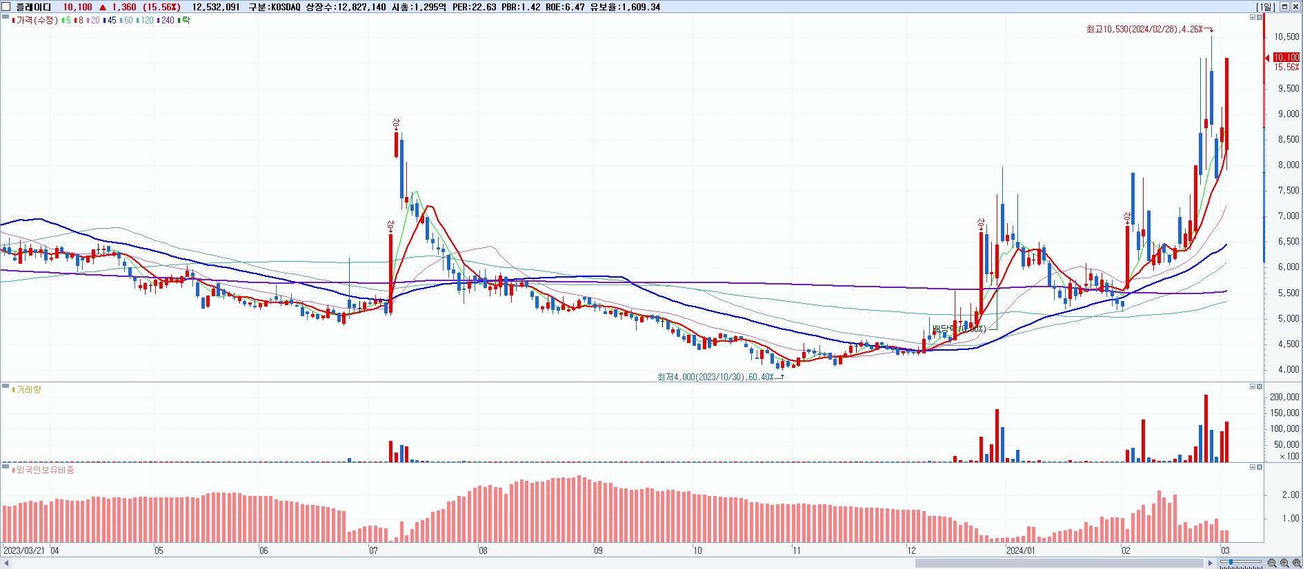 시총: 1,028억 거래량: 15,604,073 거래대금:637억
