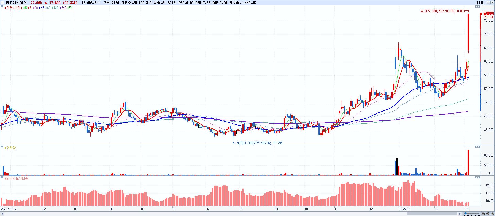 레고켐바이오 77,600원 ▲ 29.33% (KOSDAQ, 141080)