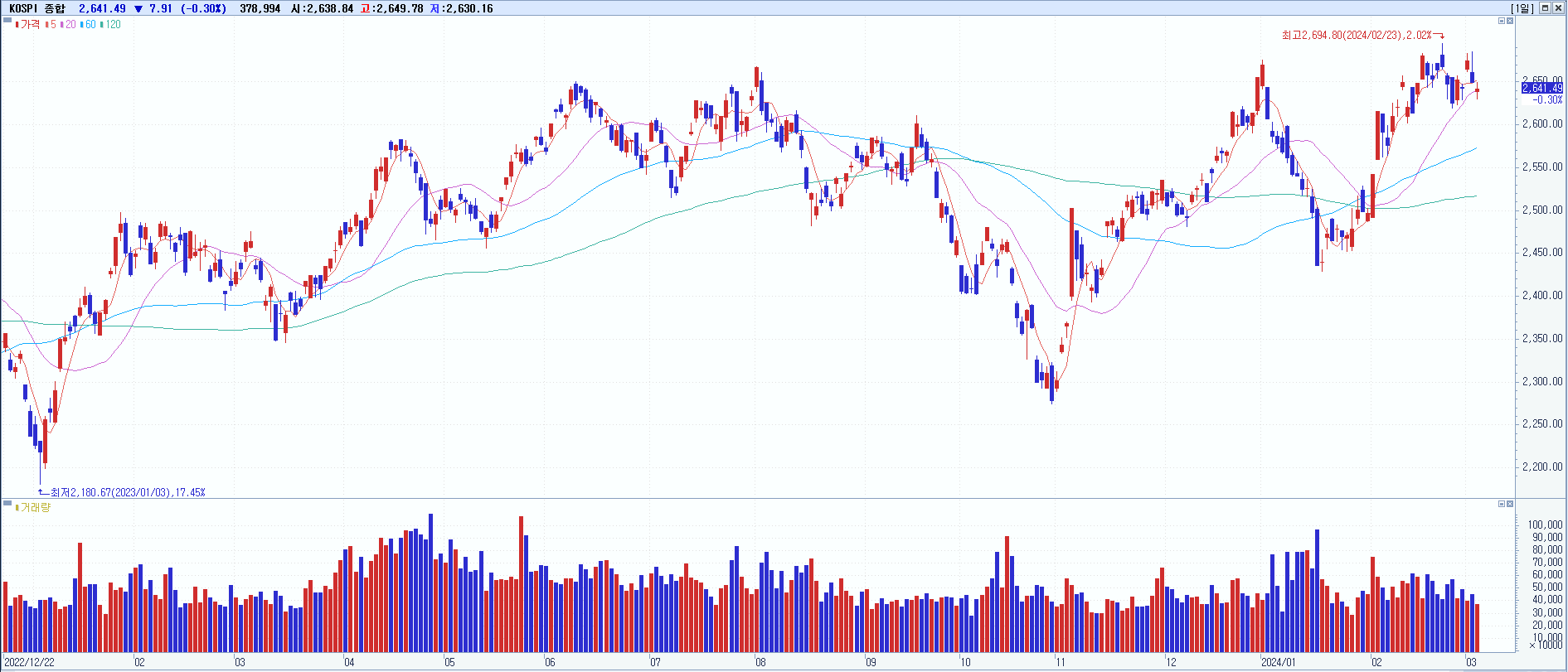 코스피 KOSPI 2,641.49 (▼-7.91) -0.30%