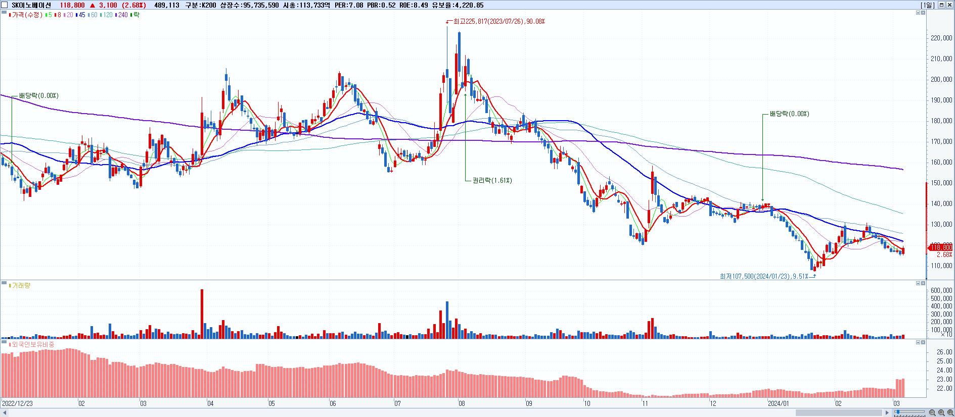 - SK이노베이션 (118,800원 ▲ 2.68% , 시총: 113,734억, 외국인 순매수 거래금:66억)