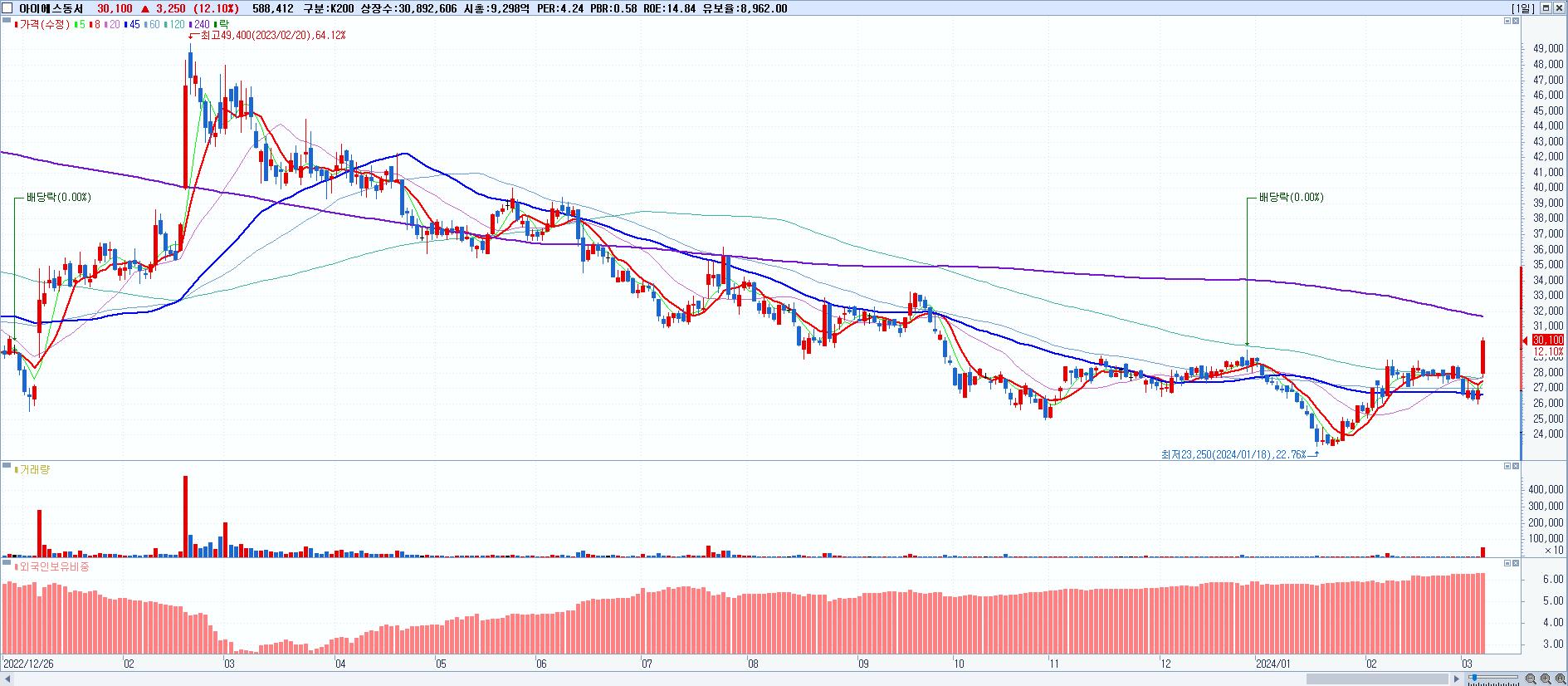 29.아이에스동서 30,100원 ▲ 12.1% (KOSPI, 010780)