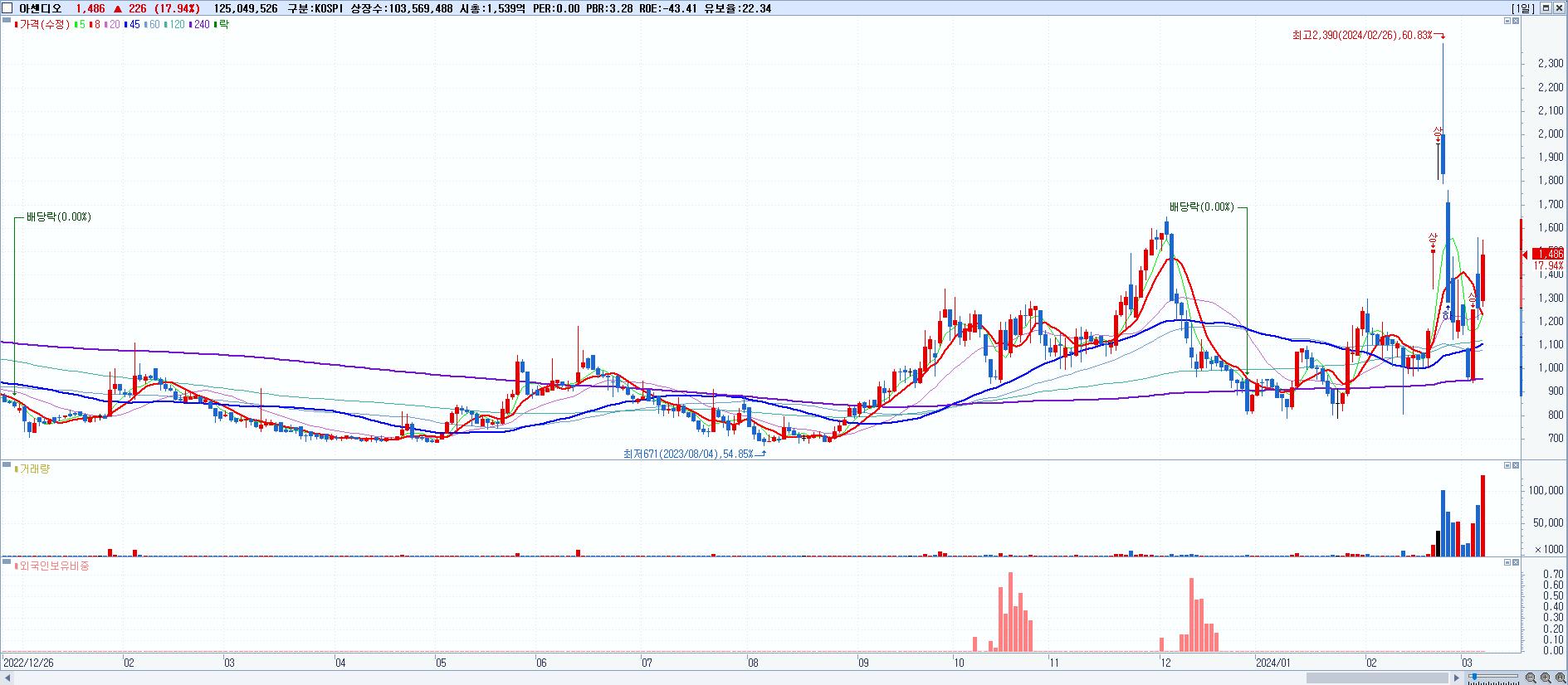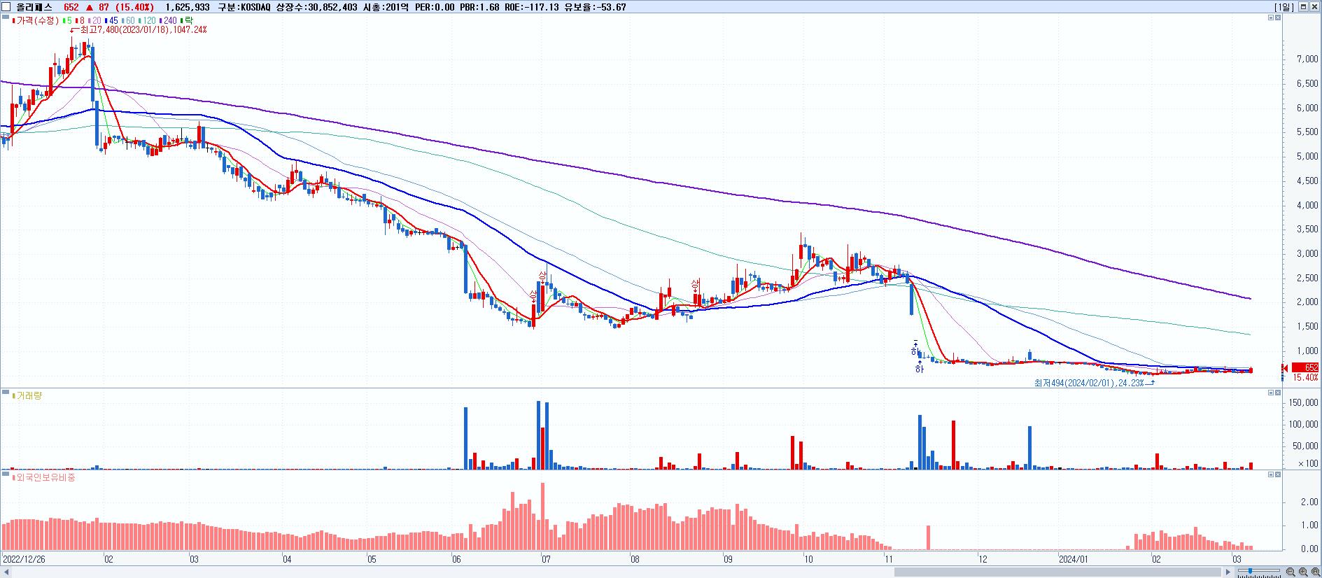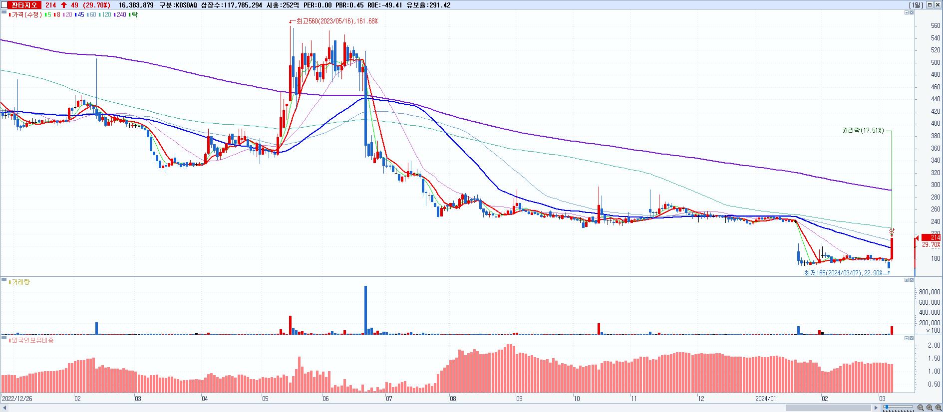 시총: 648억 거래량: 24,843,585 거래대금:360억
