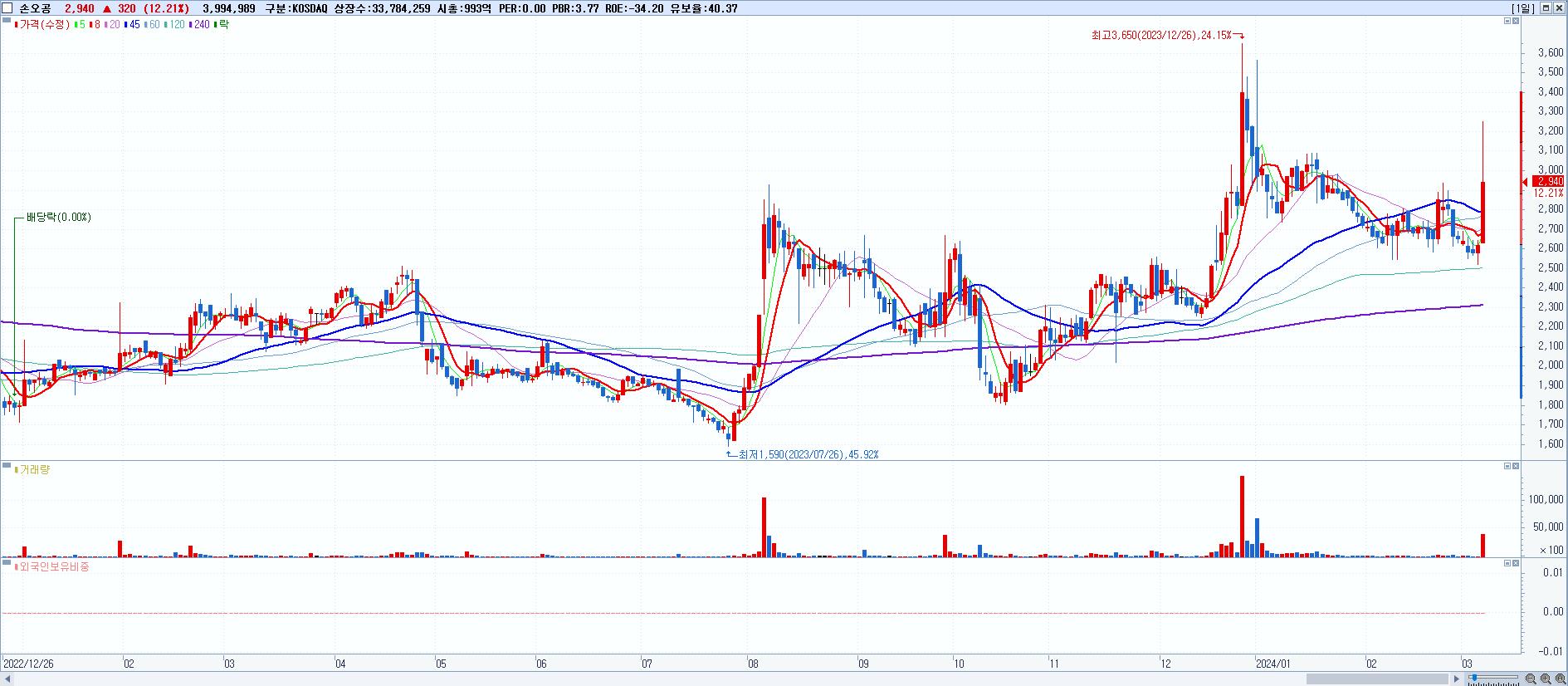 28.손오공 2,940원 ▲ 12.21% (KOSDAQ, 066910)