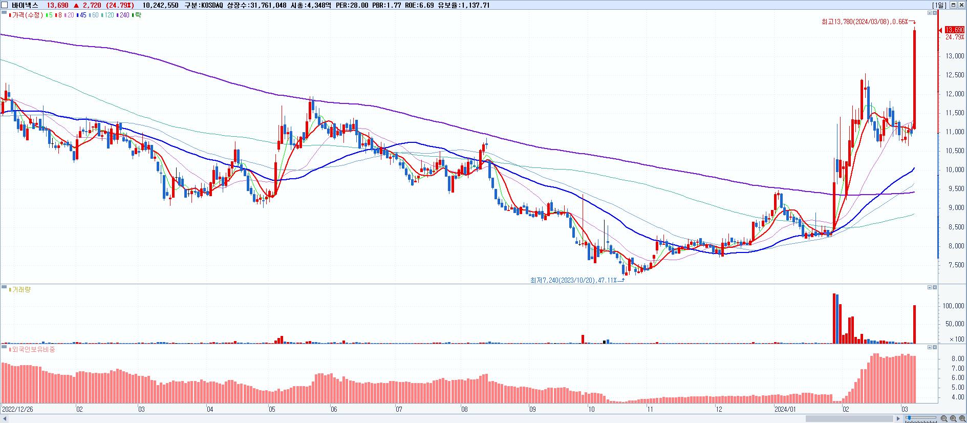 바이넥스 13,690원 ▲ 24.79% (KOSDAQ, 053030)