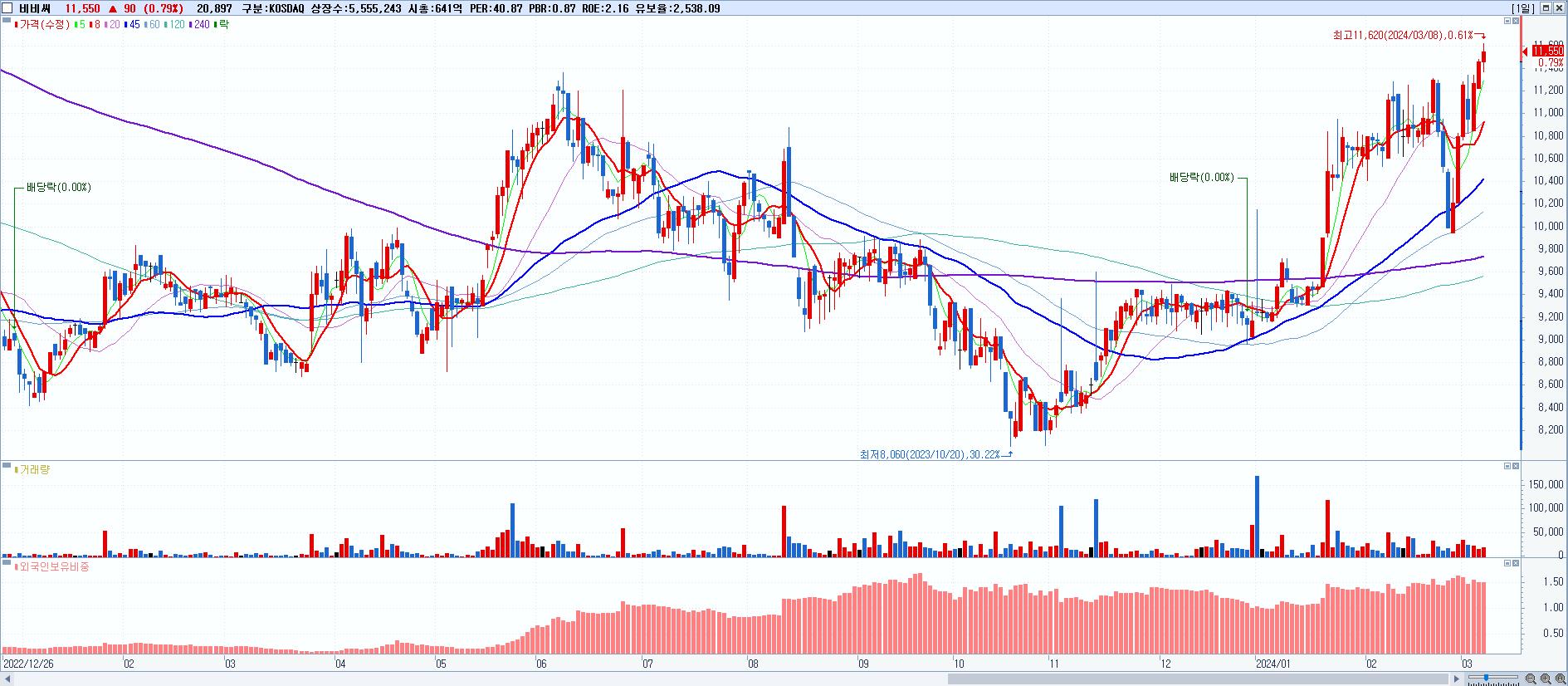 비비씨 11,550원 ▲ 0.79% (KOSDAQ, 318410)