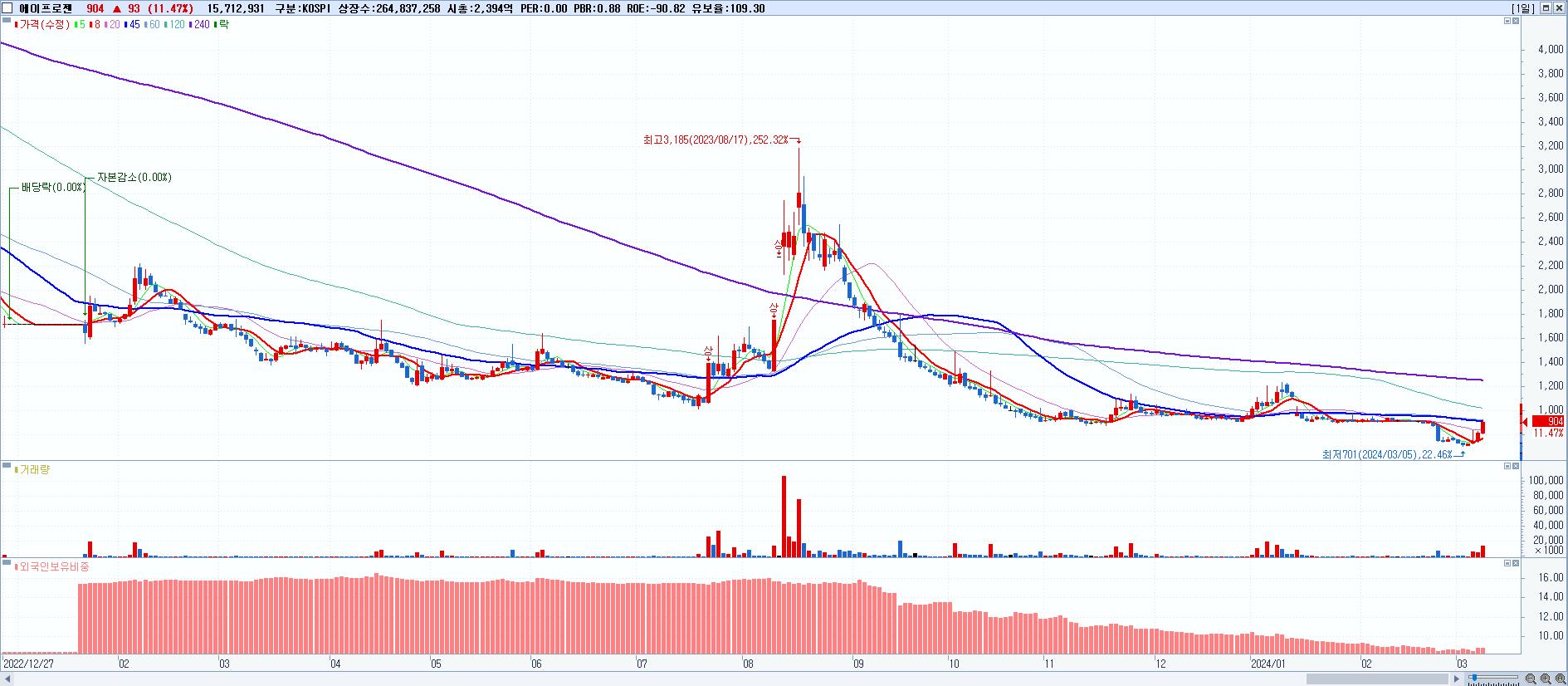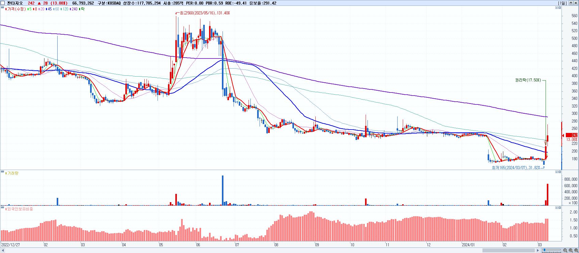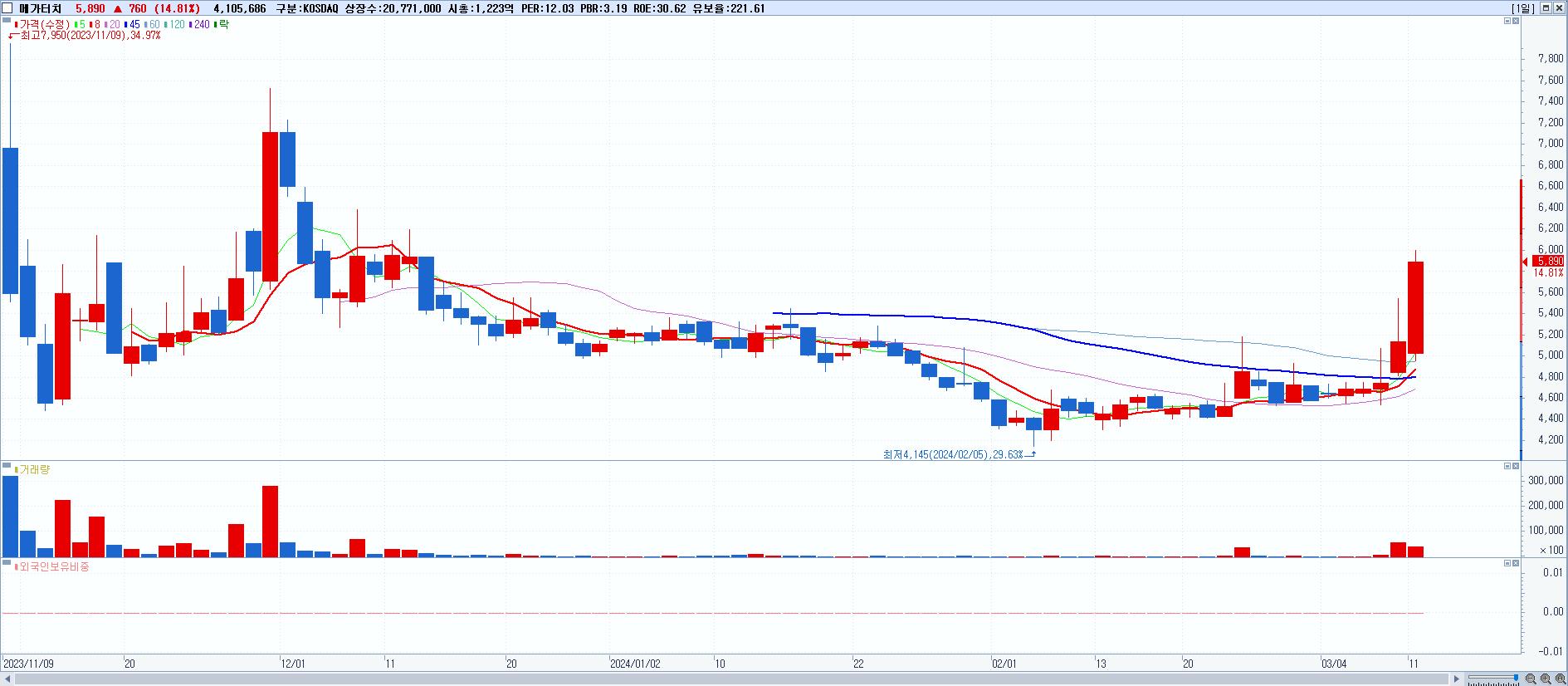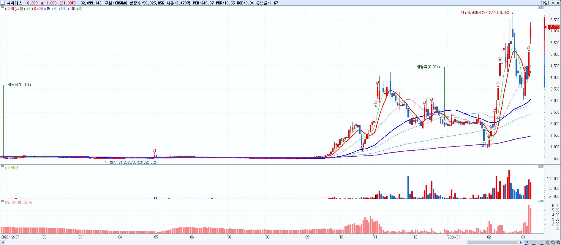 시총: 3,241억 거래량: 504,665 거래대금:198억