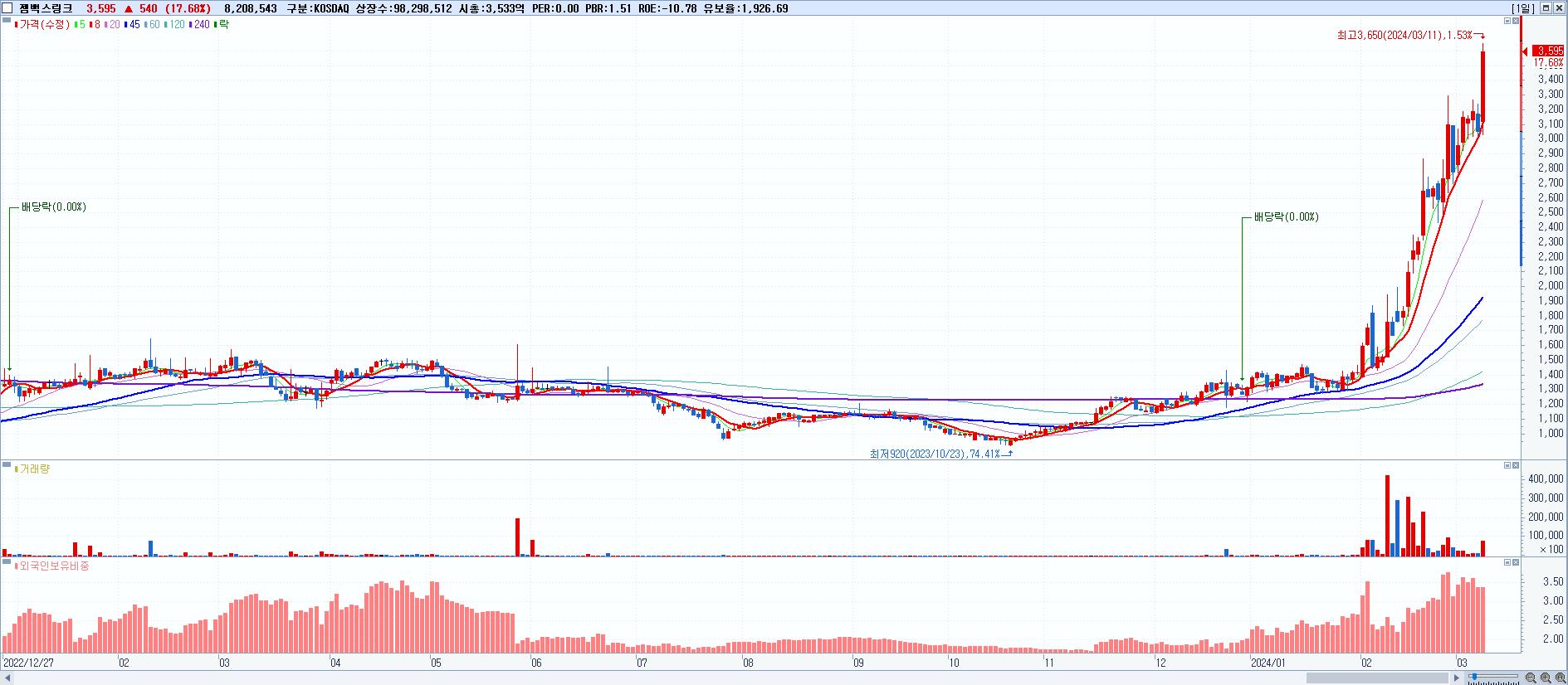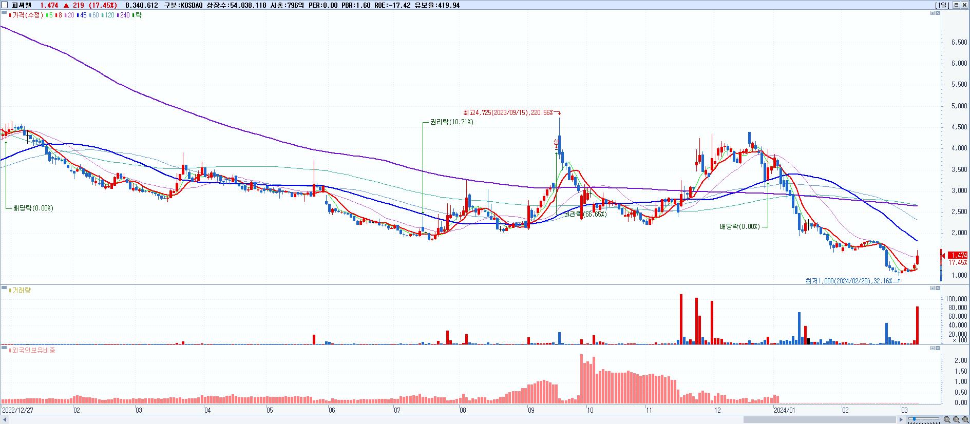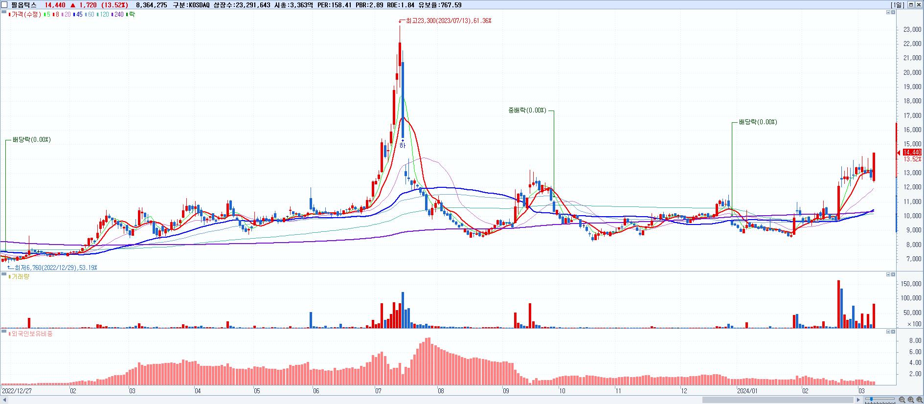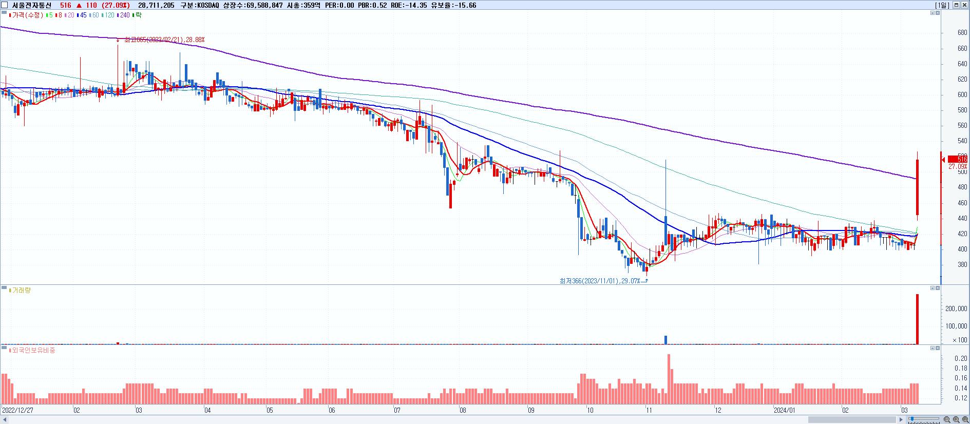 시총: 3,241억 거래량: 504,665 거래대금:198억