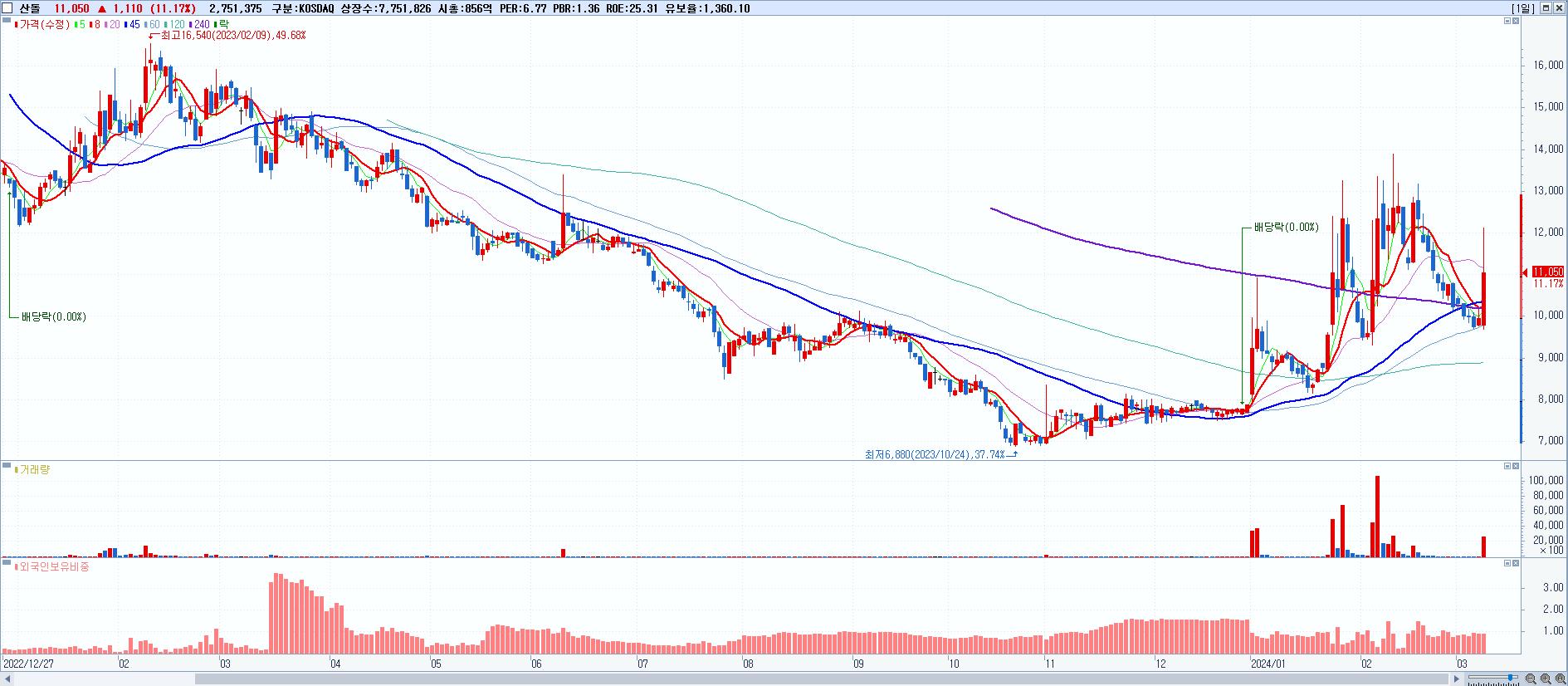 30.산돌 11,050원 ▲ 11.17% (KOSDAQ, 419120)