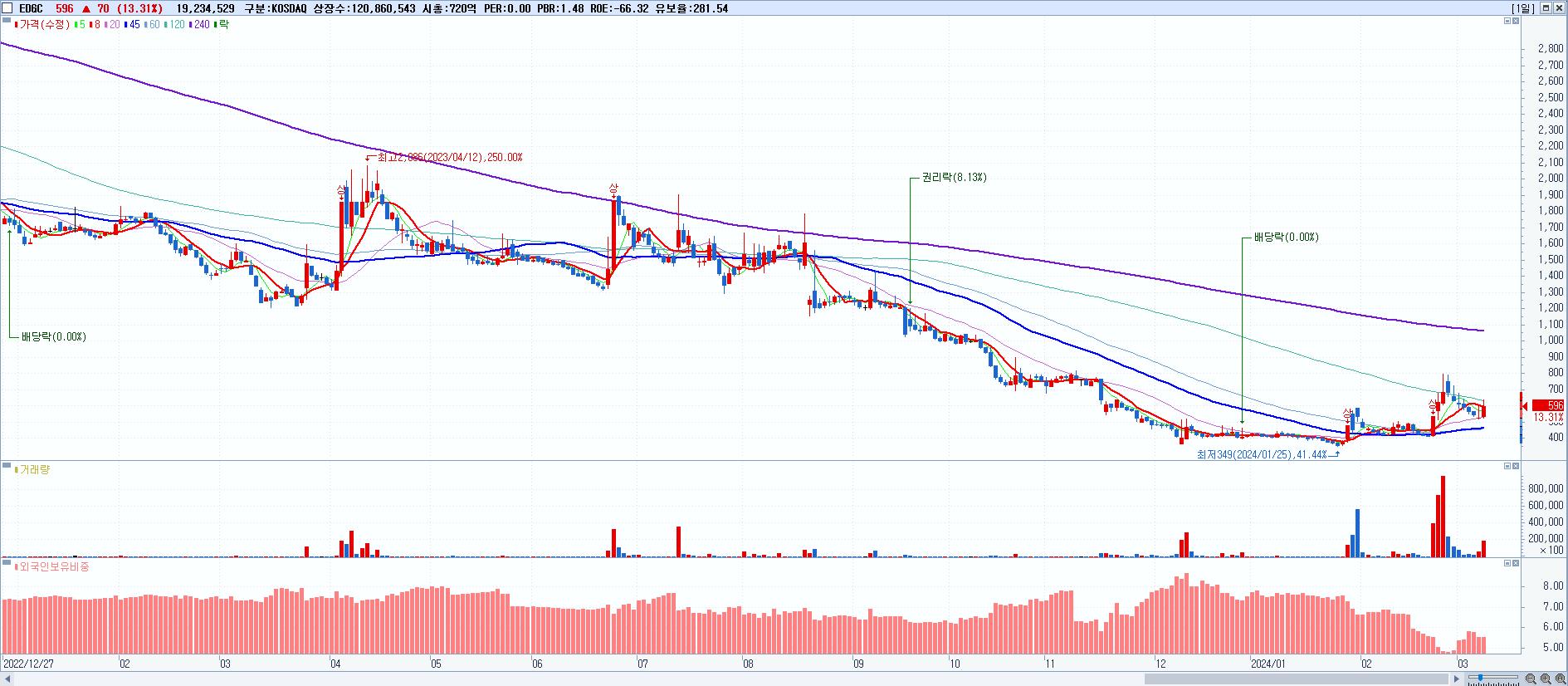 - EDGC (596원 ▲ 13.31% , 시총: 720억, 거래량: 19,234,529, 거래대금:115억)