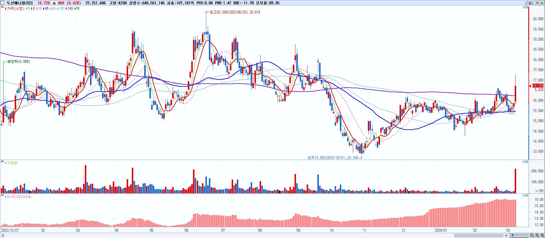 1.두산에너빌리티 16,720원 ▲ 5.42% (KOSPI, 034020)