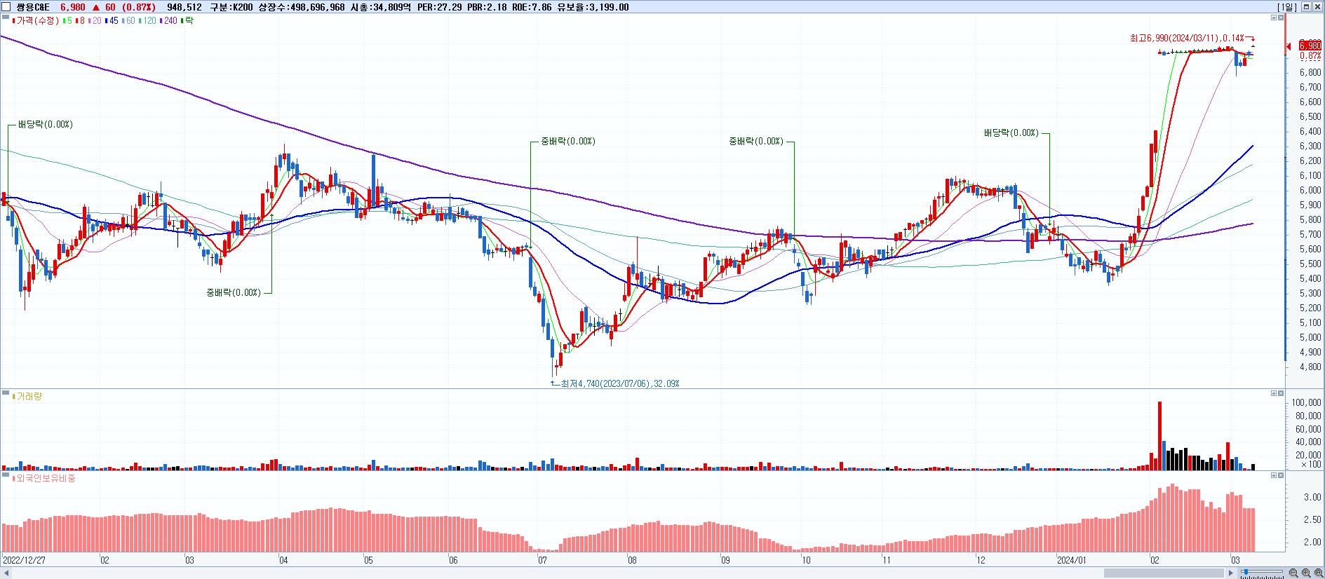 쌍용C&E 6,980원 ▲ 0.87% (KOSPI, 003410)