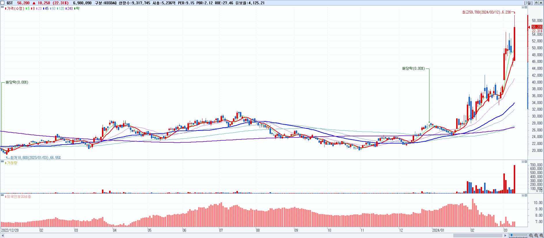 GST 56,200원 ▲ 22.31% (KOSDAQ, 083450)