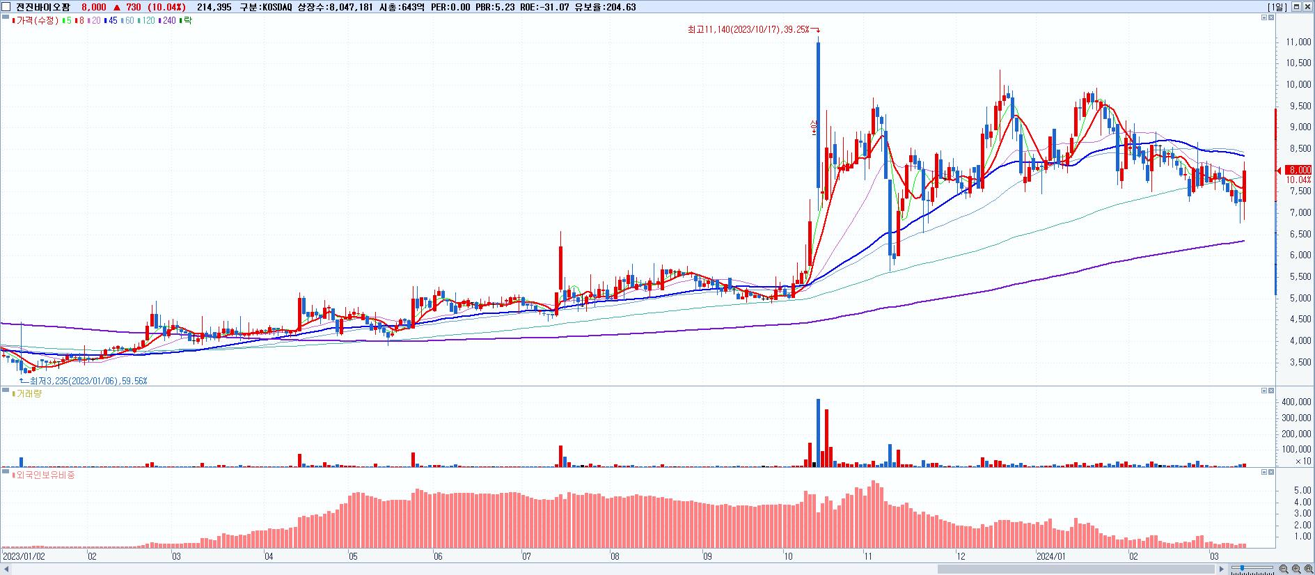 30.전진바이오팜 8,000원 ▲ 10.04% (KOSDAQ, 110020)