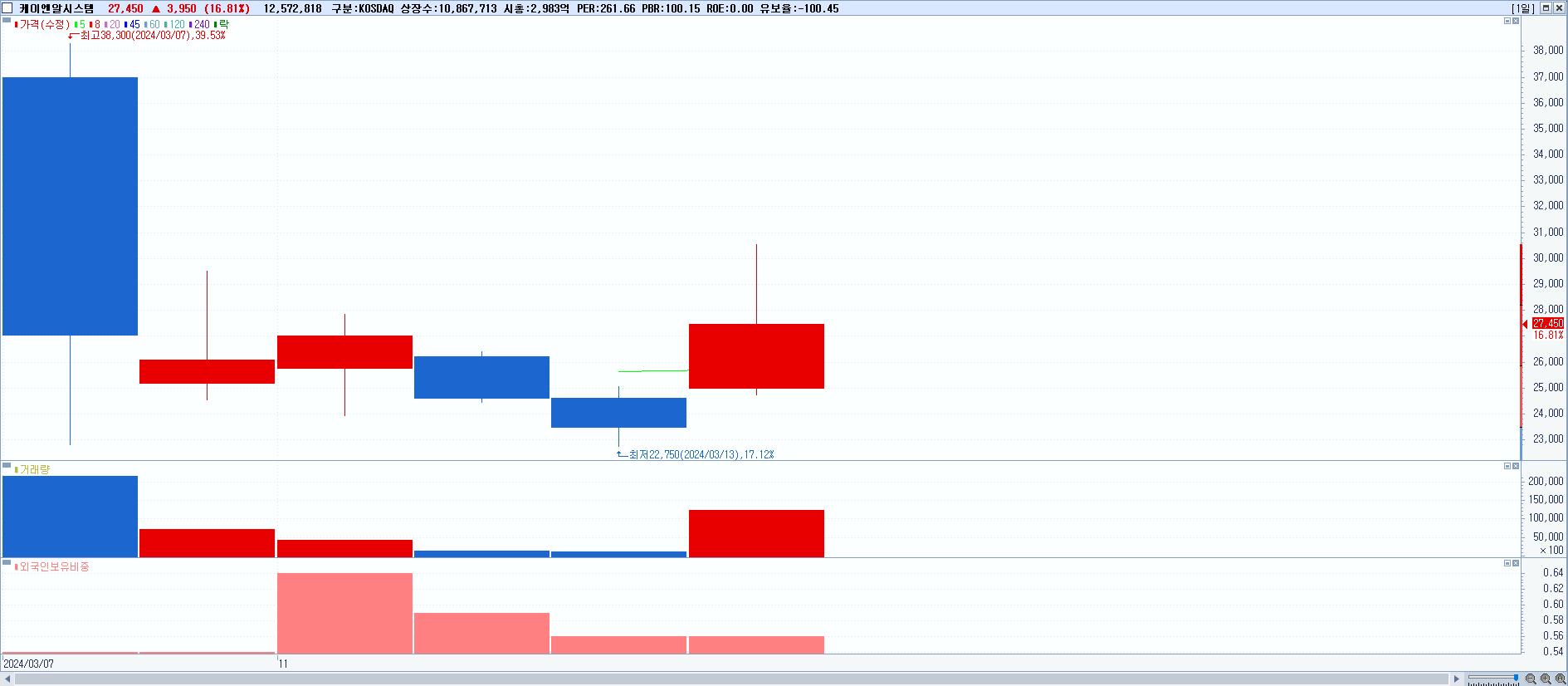- 케이엔알시스템 (27,450원 ▲ 16.81% , 시총: 2,983억, 거래량: 12,572,818, 거래대금:3,560억)
