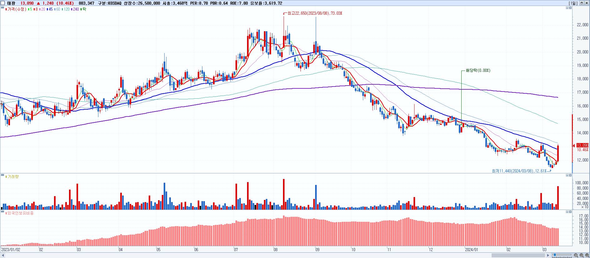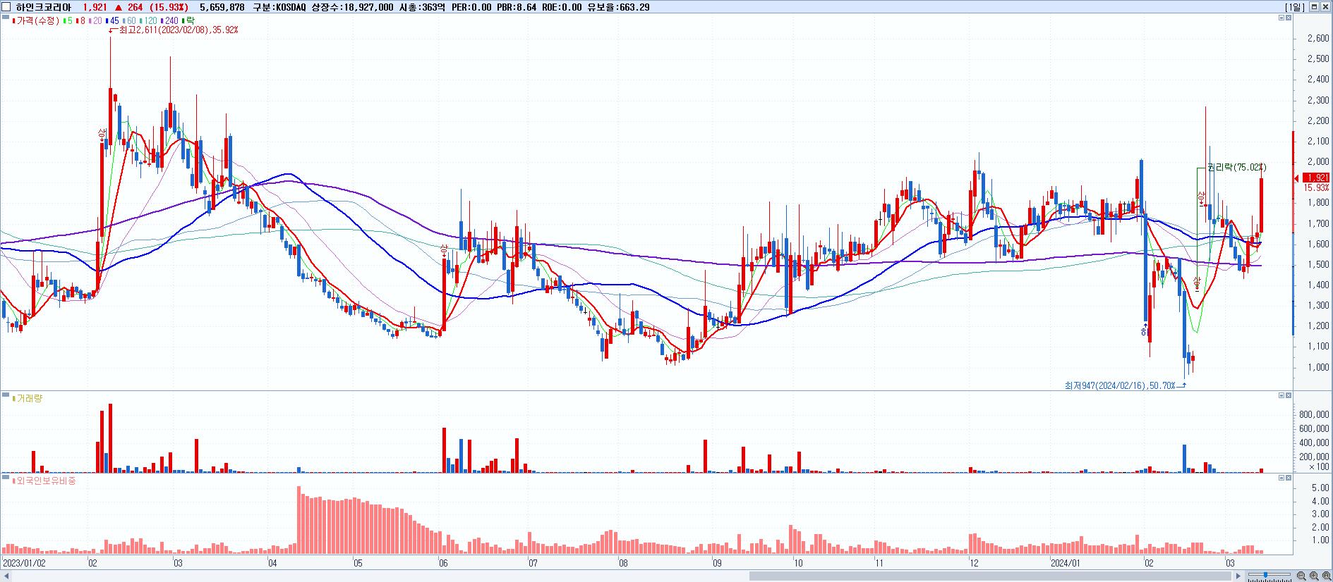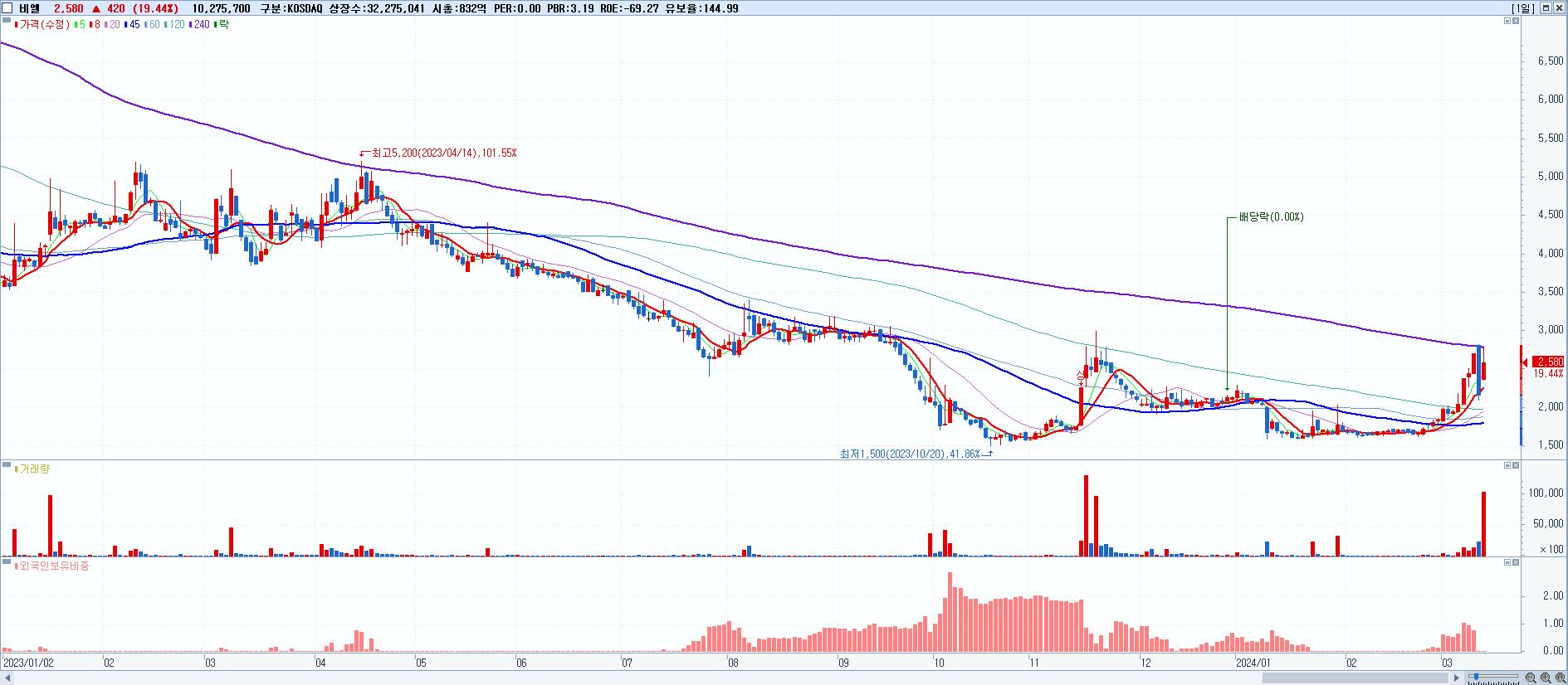 시총: 193억 거래량: 2,176,882 거래대금:85억