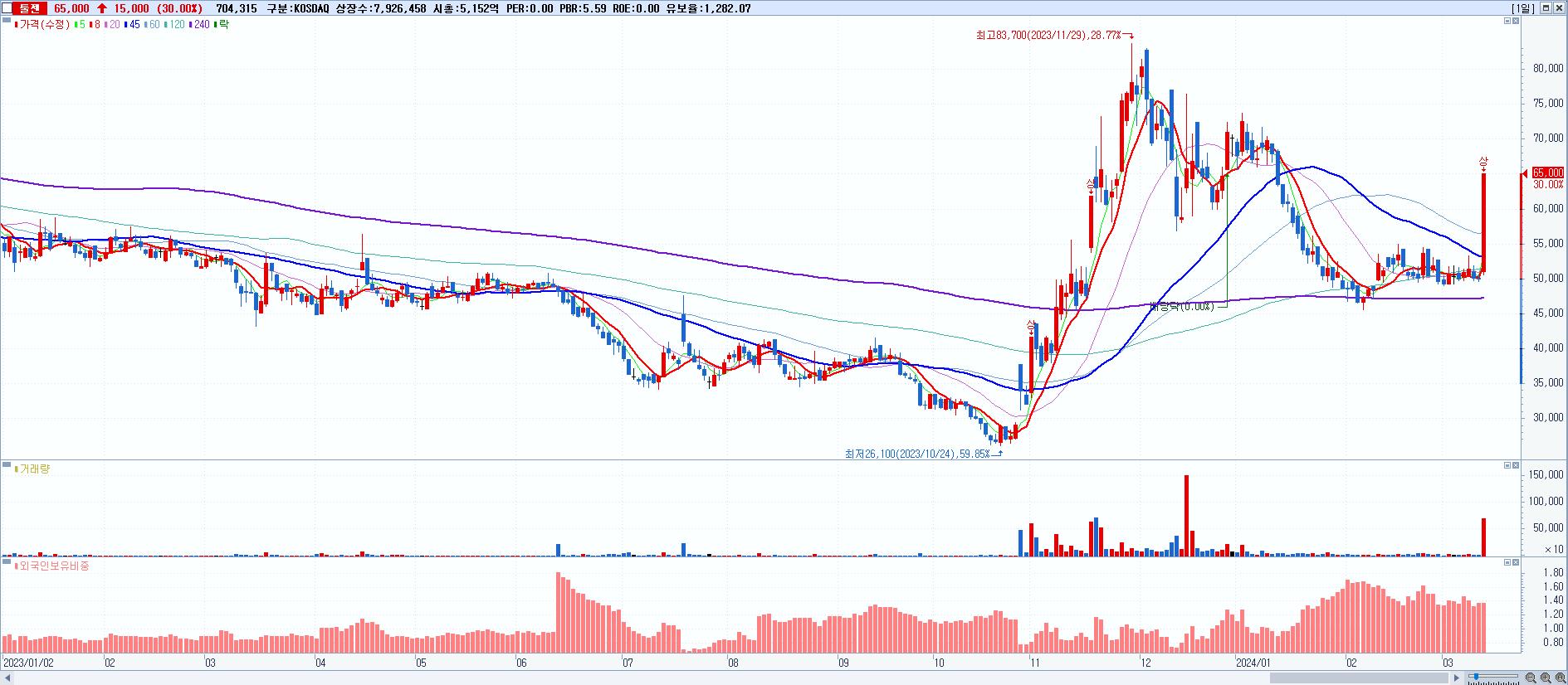 시총: 5,152억 거래량: 704,315 거래대금:428억
