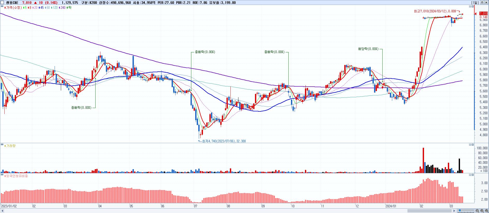 쌍용C&E 7,010원 ▲ 0.14% (KOSPI, 003410)