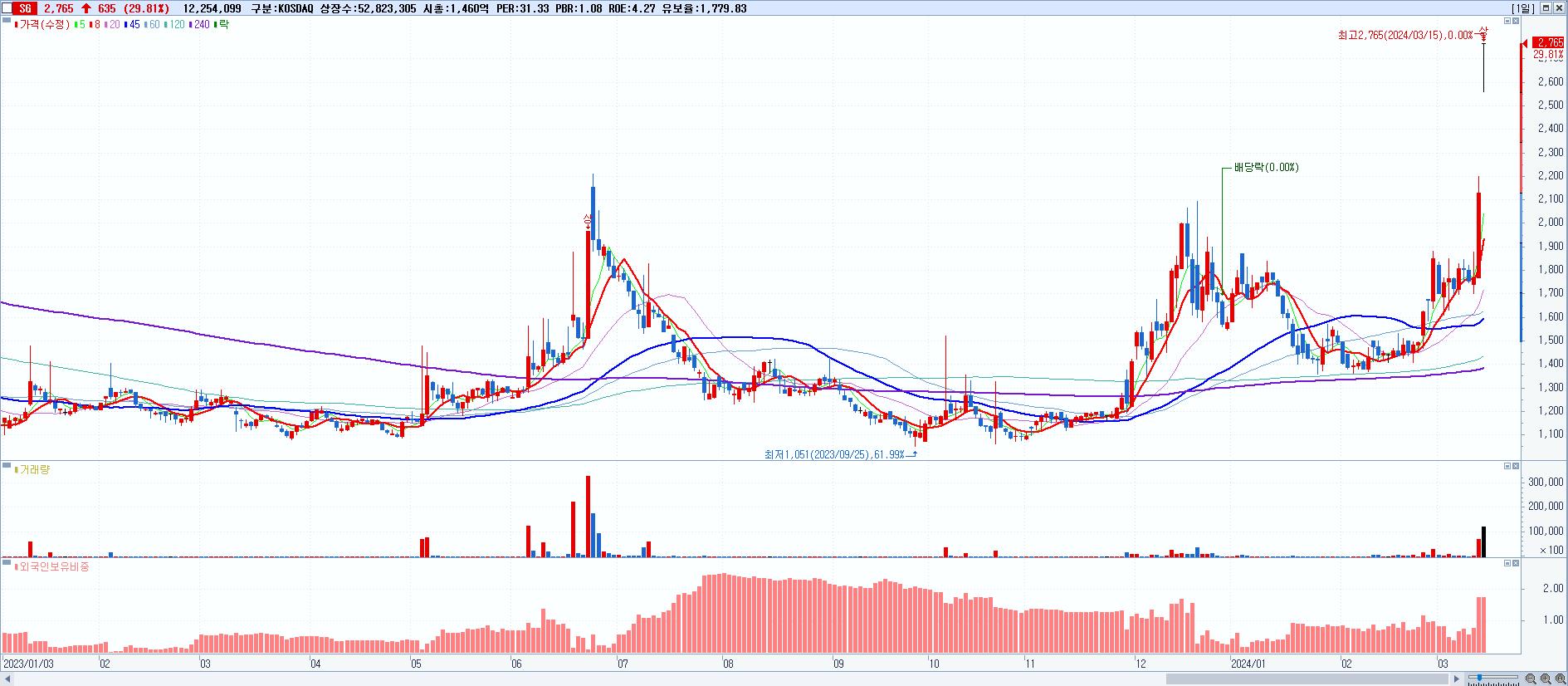 시총: 1,461억 거래량: 12,254,099 거래대금:337억