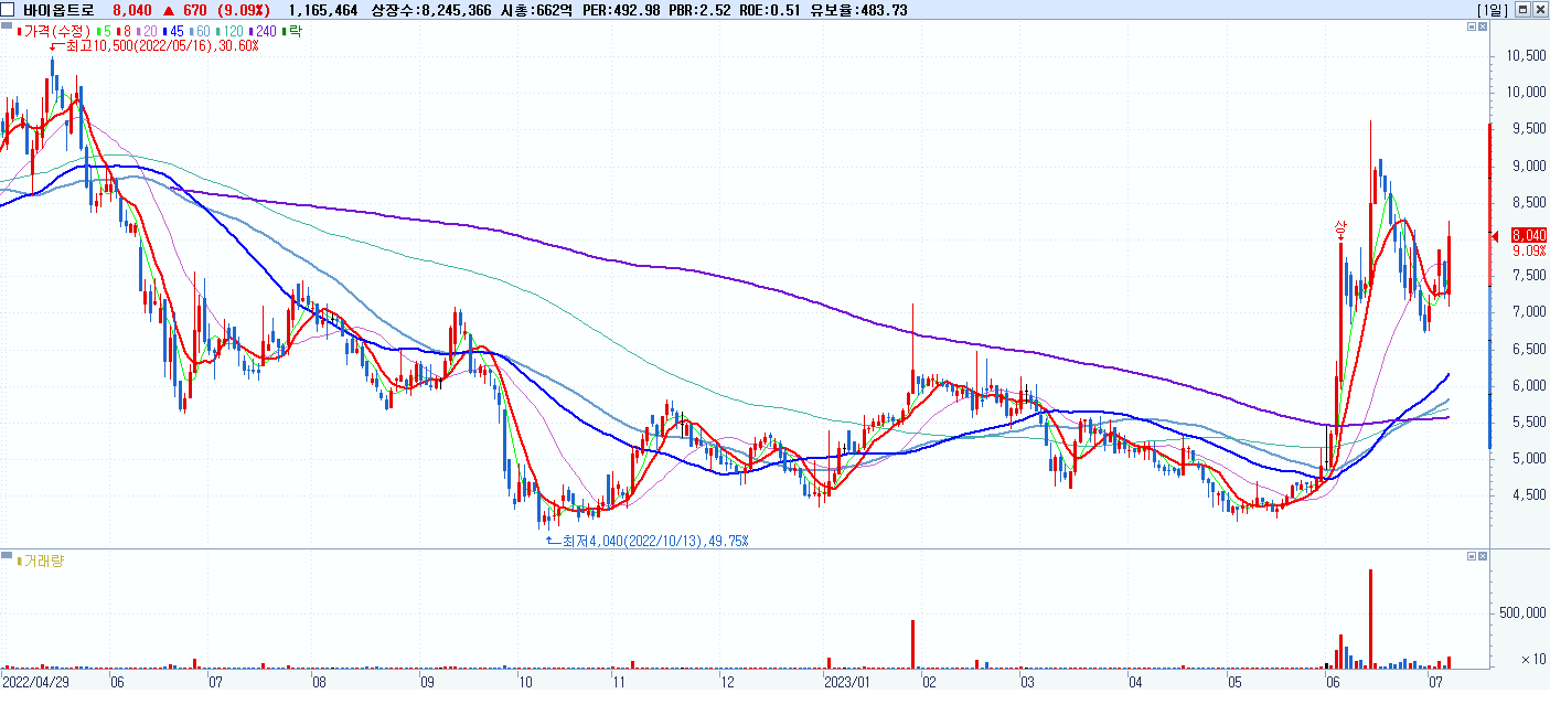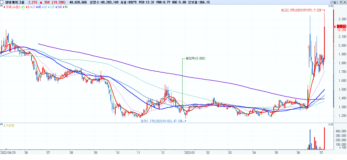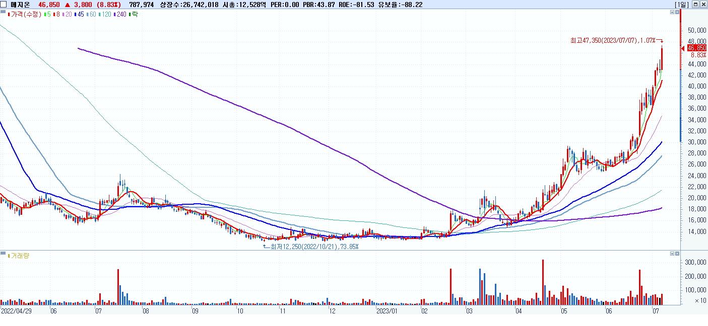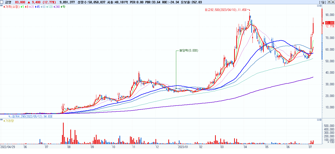시총: 892억 거래량: 48,890,622 거래대금:1,065억
